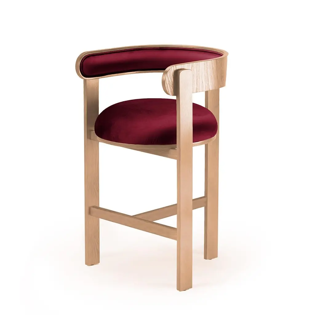 Belle Epoque Bent Wood Moulin Paprika Velvet Upholstered Bar Chair