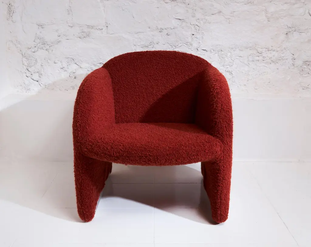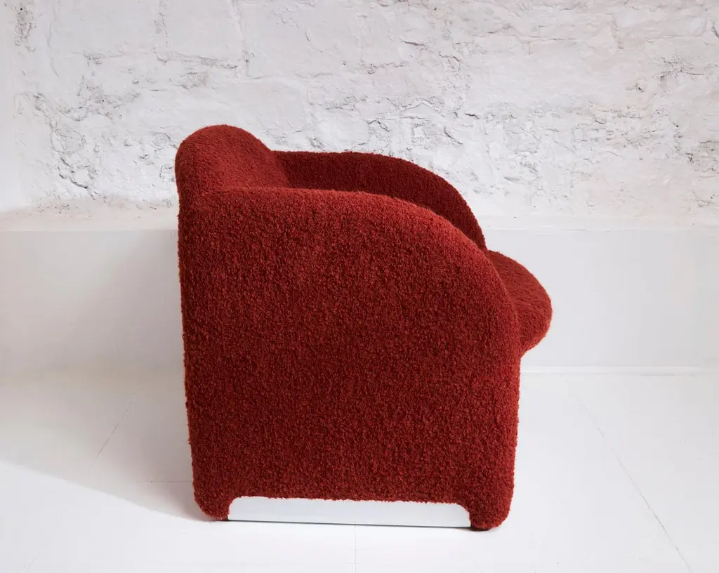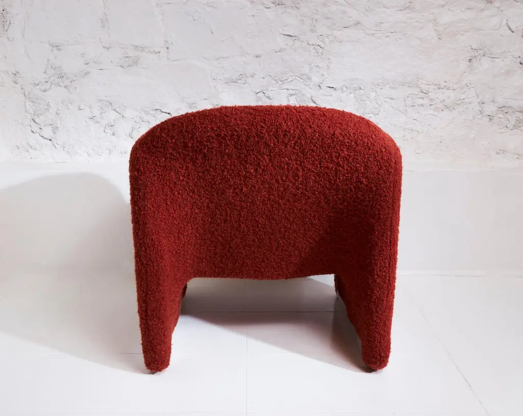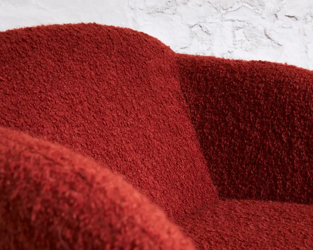 During the 1980s, French designer Pierre Paulin crafted numerous sculptural masterpieces for the Dutch manufacturer Artifort. One of these special pieces, named after his favorite colleague Ben, stands out. Upholstered in a stunning red bouclé wool, this piece adds both comfort and warmth to any home or space.