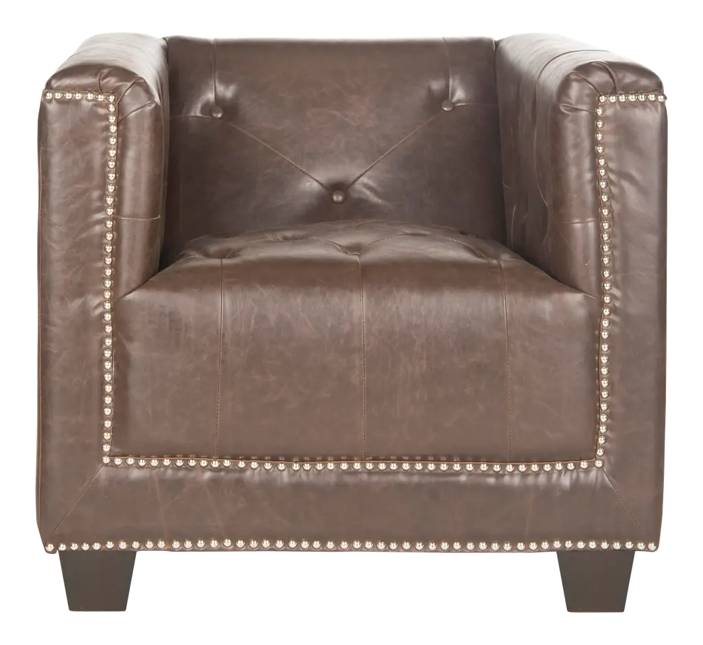 Those who appreciate classic furniture are sure to enjoy the Bentley Club Chair from Safavieh. This elegant, awe-inspiring chair features 1920s art deco styling that helps the seat stand out in any setting. And with antique brown faux leather upholstery with nail head trim and black birch wood legs, this chair blends elegance and functionality perfectly. Provide your guests with an outstanding chair that will provide consistent comfort -- the Bentley Club Chair.