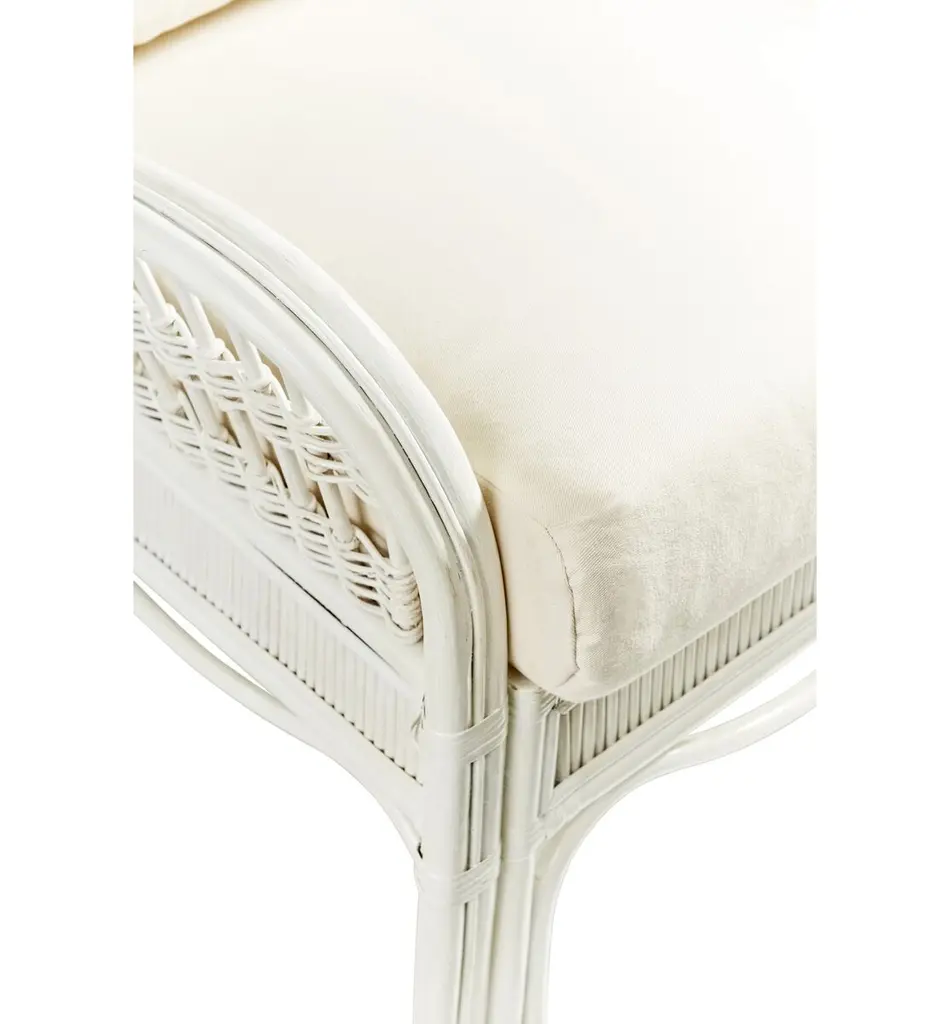 A lovely addition to your island-inspired decor, this curvy club chair is crafted of rattan and wicker with cotton-upholstered cushions that are amply padded with high-density foam. Recommended for use in covered areas only.