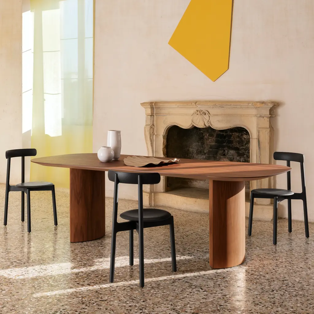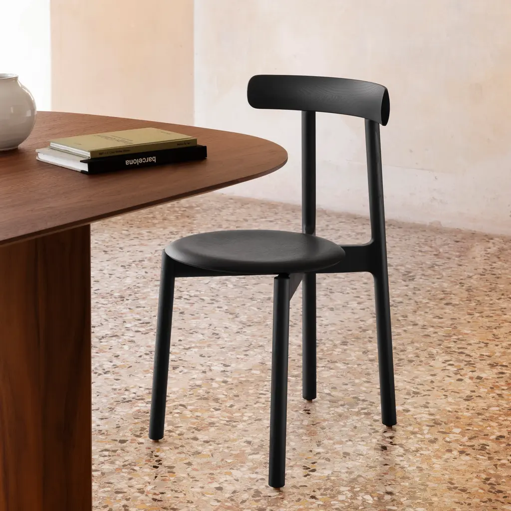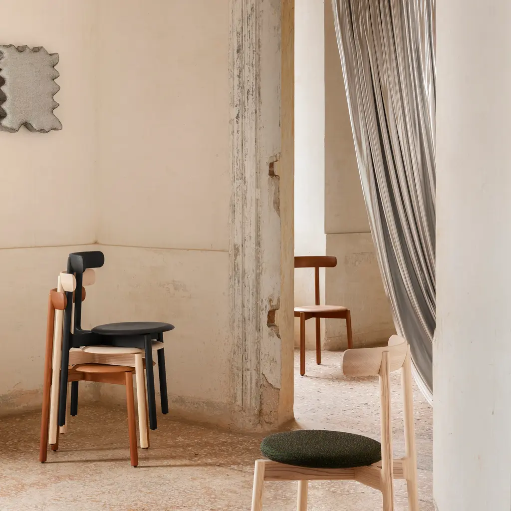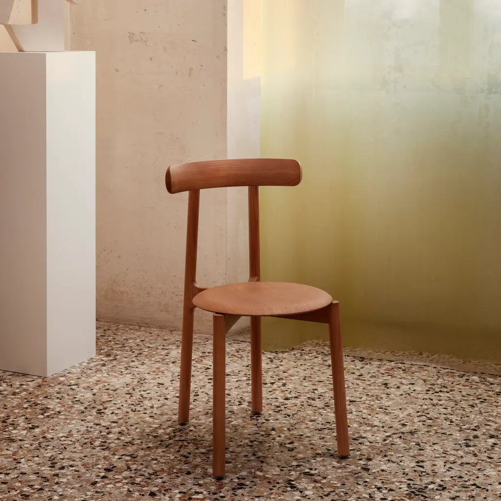 We love its simplicity: from its lines to its mood, declares Venice-based family Italian design firm Miniforms. Bice has everything we want from a chair. No argument here, as the distinctive arc of its backresta single, solid piece of wooddefines the chairs design ethos. The circular form repeats in the rounded wood seat, linked together by a frame that converges in a discreet yet essential X detail where the front and back legs meet.