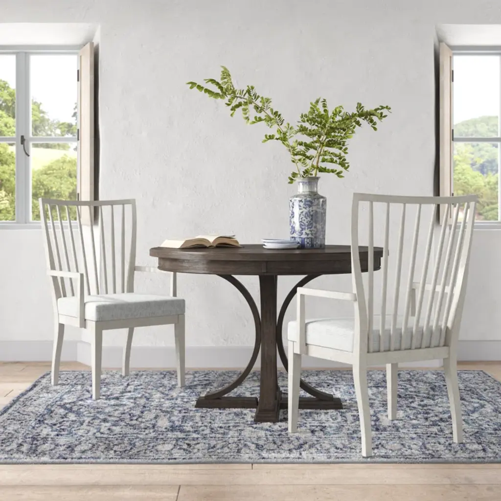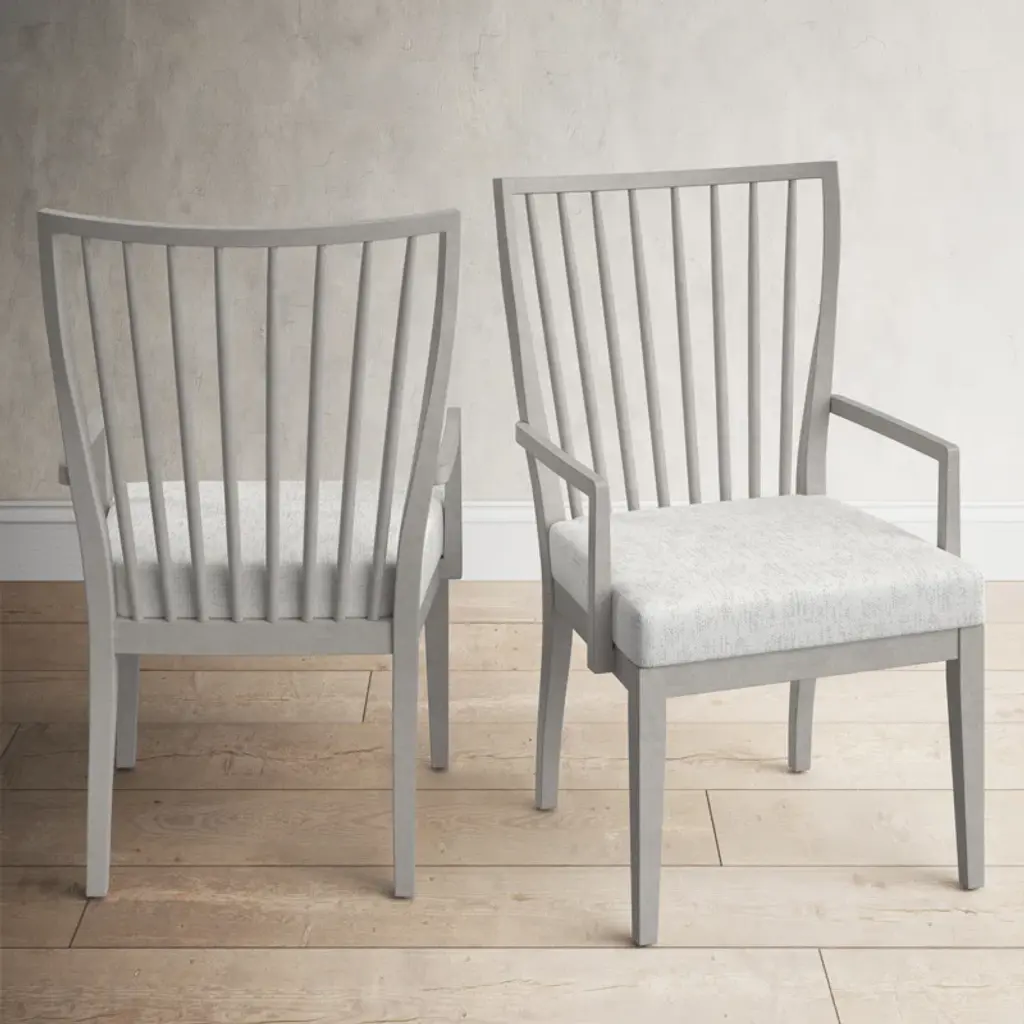 Inspired and inviting, the armchair features a clean-lined body, a contemporary slat back, and an upholstered seat, creating a modern seating option.