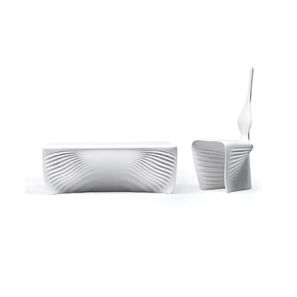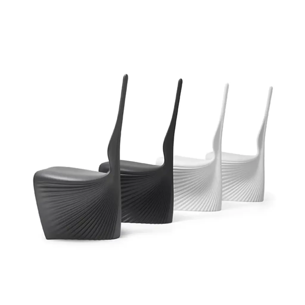 An homage to the mesmerizing organic features of Barcelona's La Sagrada Familia. The Biophilia Chair from Vondom is a piece of functional art designed for comfort. Great inside or out, the sculptural design is achieved with polyethylene using an advanced rotational molding process. Cutting excess material for an airy feel on warm days, the backrest follows the contours of your back with a wavy silhouette. Transitioning seamlessly from the backrest, the seat pleases with a wide surface area and rounded edges. The tapered base underlines the chair's connection to the famous basilica as flowing striations wrap around its exterior and interior.