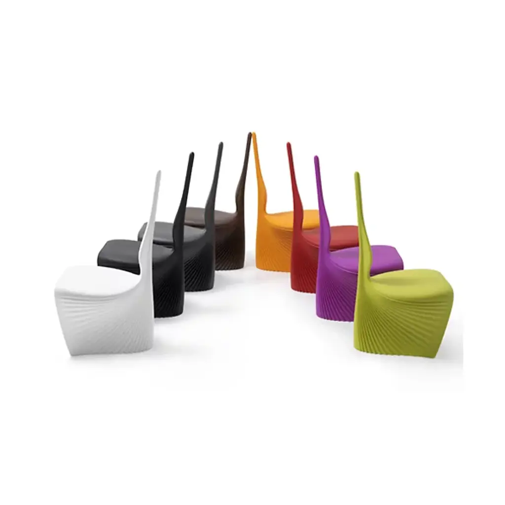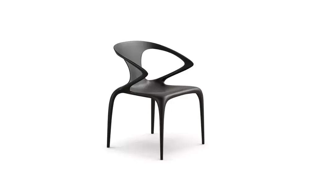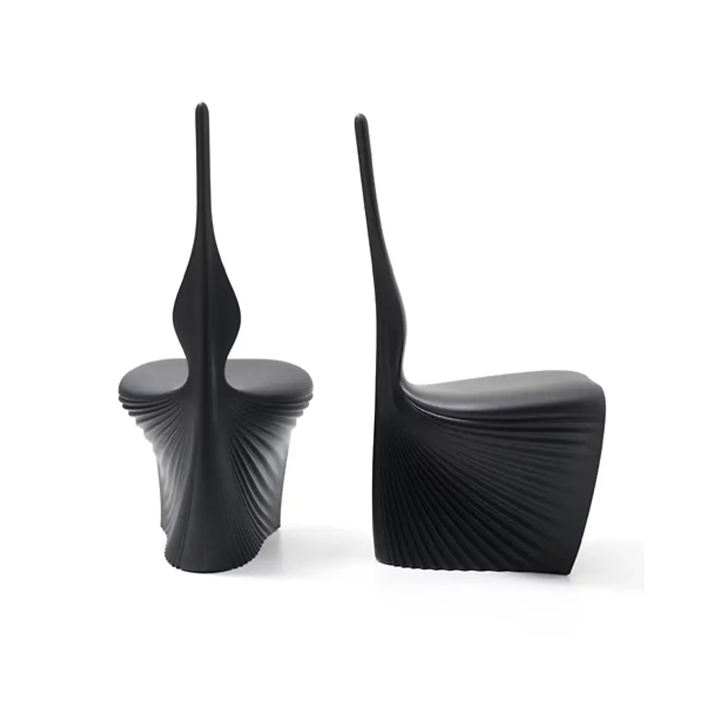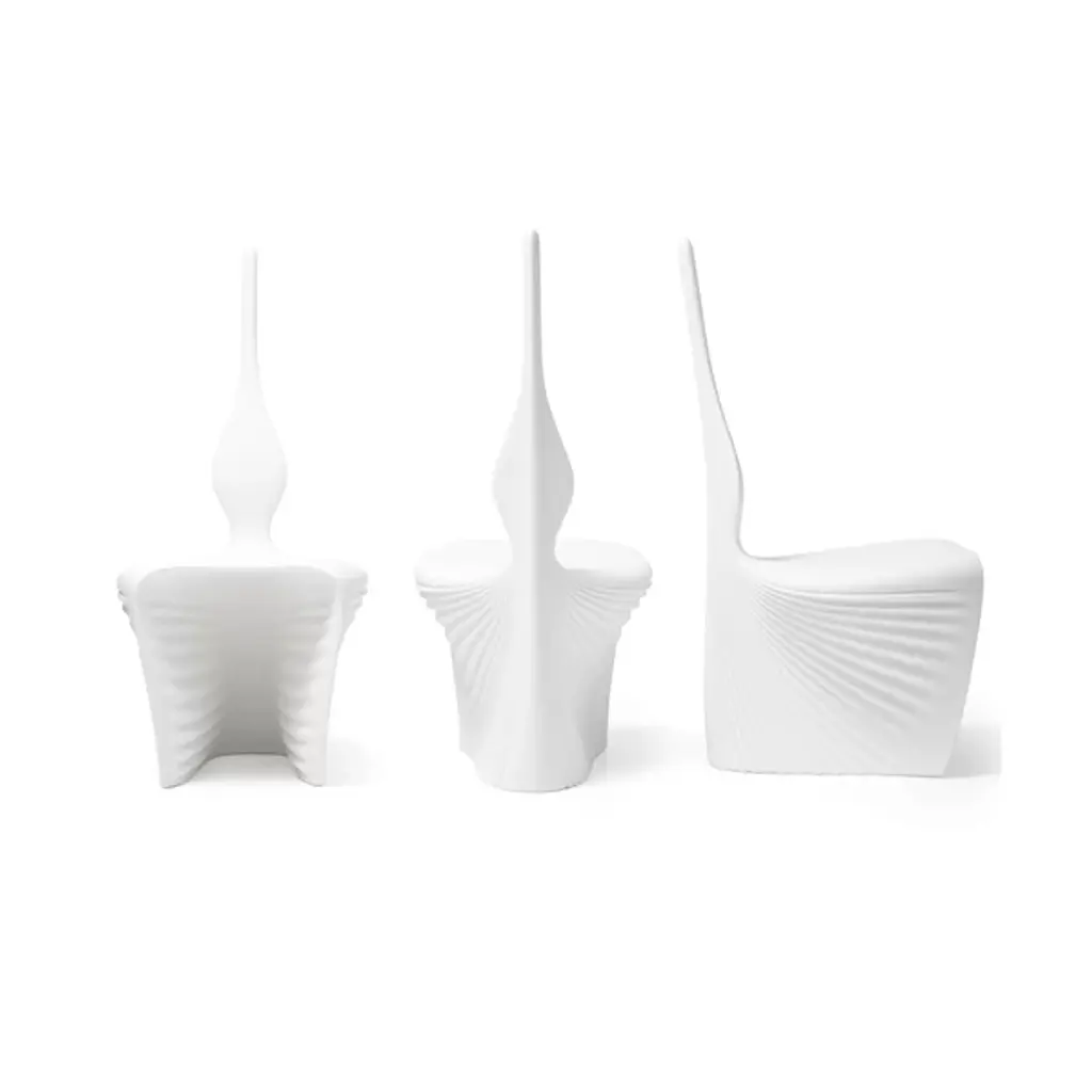 An homage to the mesmerizing organic features of Barcelona's La Sagrada Familia. The Biophilia Chair from Vondom is a piece of functional art designed for comfort. Great inside or out, the sculptural design is achieved with polyethylene using an advanced rotational molding process. Cutting excess material for an airy feel on warm days, the backrest follows the contours of your back with a wavy silhouette. Transitioning seamlessly from the backrest, the seat pleases with a wide surface area and rounded edges. The tapered base underlines the chair's connection to the famous basilica as flowing striations wrap around its exterior and interior.