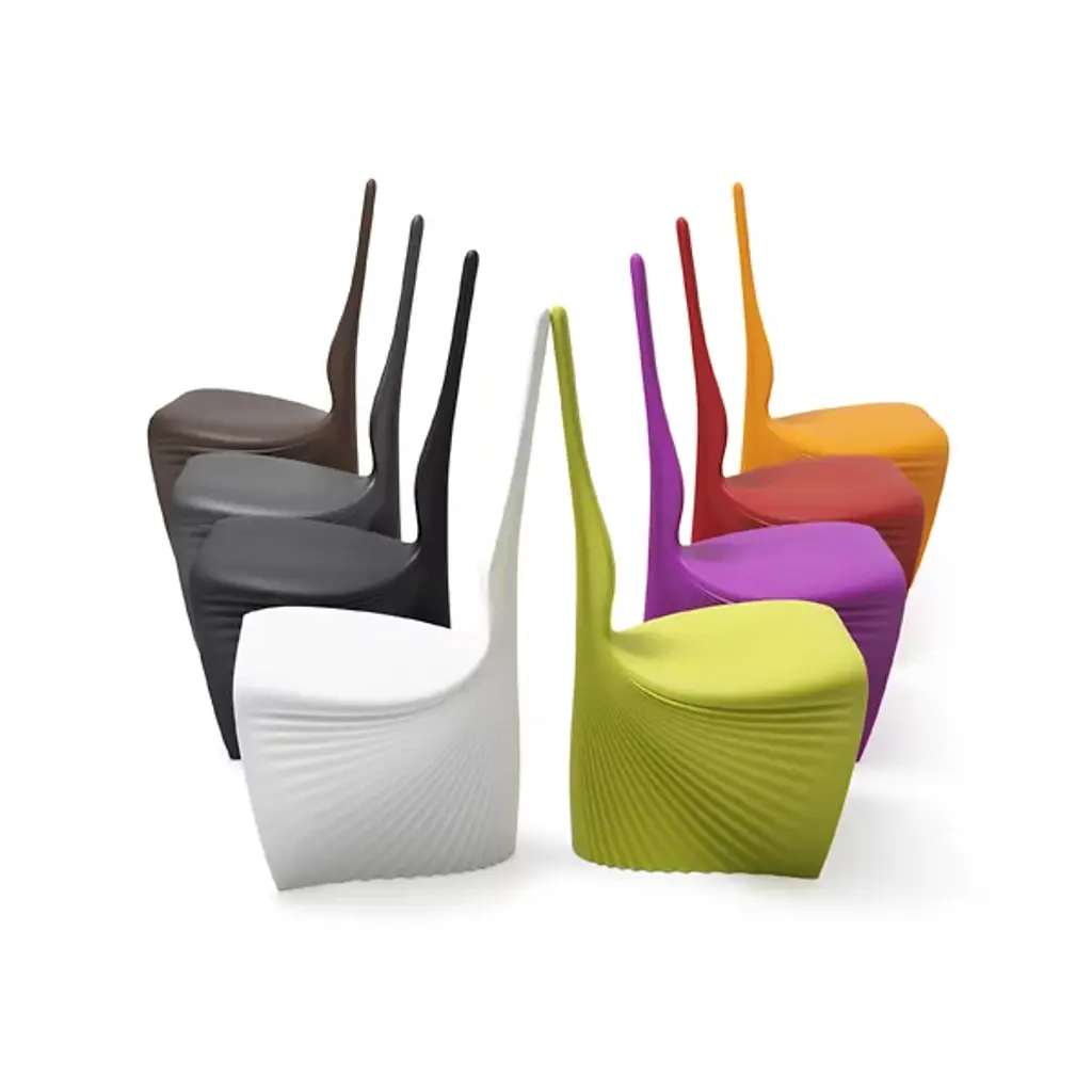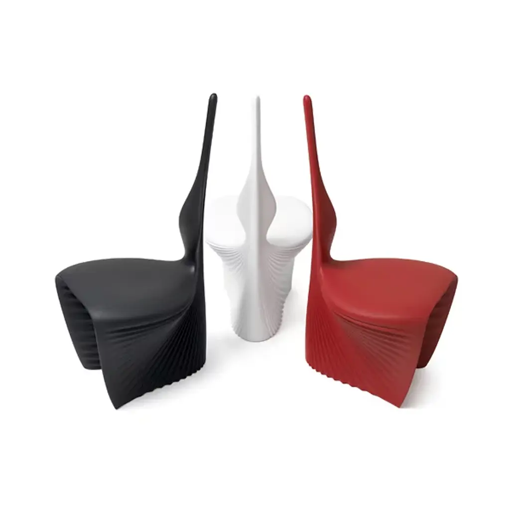 An homage to the mesmerizing organic features of Barcelona's La Sagrada Familia. The Biophilia Chair from Vondom is a piece of functional art designed for comfort. Great inside or out, the sculptural design is achieved with polyethylene using an advanced rotational molding process. Cutting excess material for an airy feel on warm days, the backrest follows the contours of your back with a wavy silhouette. Transitioning seamlessly from the backrest, the seat pleases with a wide surface area and rounded edges. The tapered base underlines the chair's connection to the famous basilica as flowing striations wrap around its exterior and interior.