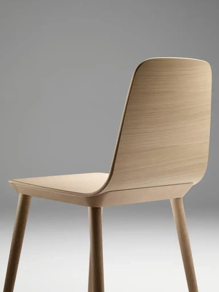 Chair with wooden frame.Traditional and modern styles are perfectly balanced in the serene and discreet design of the Bisell chair which blends Treku features into warm and intimate settings. Its simple design combines a wooden top, solid wood and upholstery to obtain distinct finishings which, together with different wooden and metal bases, make it suitable for a variety of settings and uses, whether in the home or office.