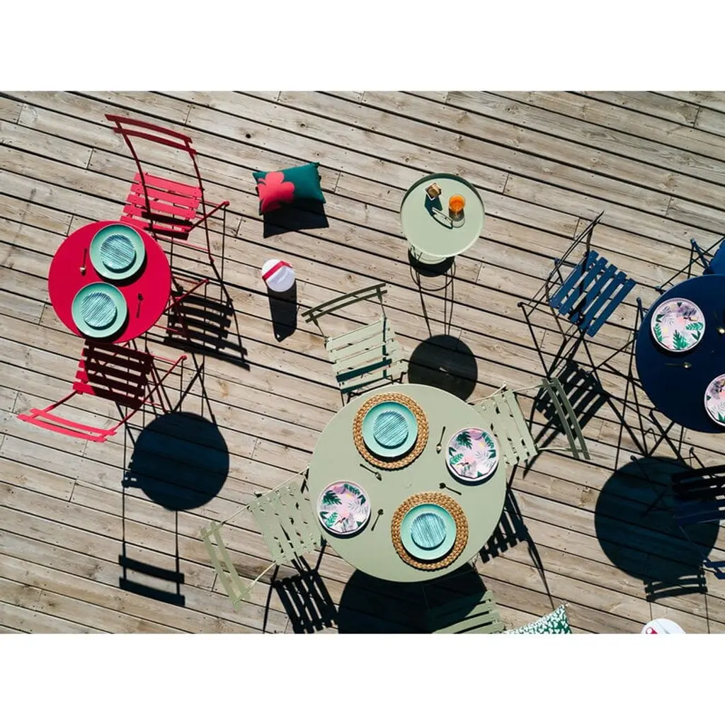 Fermob’s folding Bistro metal chairs are not only charming and convenient, but weather-proof, too – the anti-UV powder coating guarantees bright colors for years to come. The Bistro collection is manufactured in Fermob’s factory in France from premium-quality materials. Folding chairs and tables were popular among lemonade vendors in the end of the 19th century, since the furniture was easy to pack away and they could avoid paying the fees for a permanent stand. Fermob’s Bistro collection strives for authenticity since it is based on the original design patented in 1889. The classic yet timeless furniture is a great choice for modern terraces, balconies and gardens.