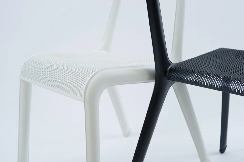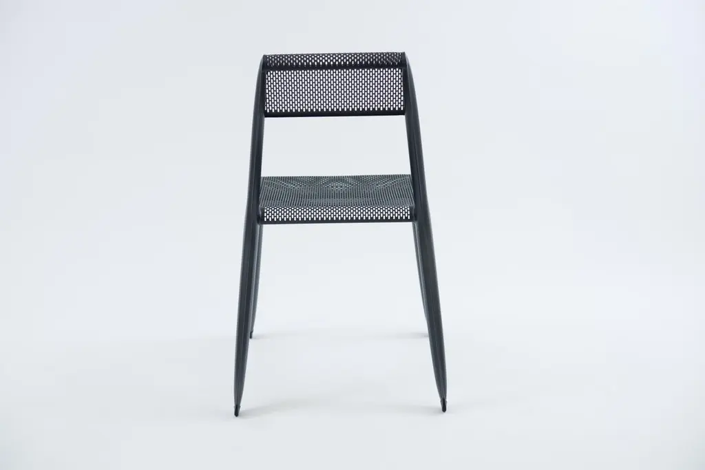 Black leggera chair by ZietaDimensions: D 58 x W 49 x H 78 cm Material: Carbon steel. Finish: Powder-coated.Available in other colors. Also available in Ultraleggera version.LEGGERA chair is a steel seating with clean lines and simple form. It was designed by Zieta Studio to be a timeless piece of furniture: made of one material it is uniform and universal. It can be used both indoors and outdoors – you decide!The LEGGERA’s seat and backrest are made of thin open-worked steel sheet perforated with little oval holes that make it light and stable at the same time. The frame of the chair was made using FiDU technology: a two-dimensional form was inflated with air to become a durable structure.The chair is available in various finishes – also made to order.About Zieta: Zietas main goal is to deliver uniqueness and customization in design and construction while keeping the production, transport, and warehousing innovatively efficient.This is how they imagine the future world: Light, durable structures of customized applications produced on demand out of one-of-a-kind parts, yet efficiently.They use a computer-controlled production process. Customized pattern, customized form, customized function, one-of-a-kind product, and outstanding precision are what they deliver.You will find all of this philosophy reflected in the products. The research, they discover new possibilities, they play with forms and they deliver a beautiful, innovative, surprising outcome to people who love the design and who care about design development.They believe their work is a valuable contribution to the world of design not only by the unique beauty of the forms but most of all by opening ultra-innovative opportunities of forming and new paths for the world of the future. __