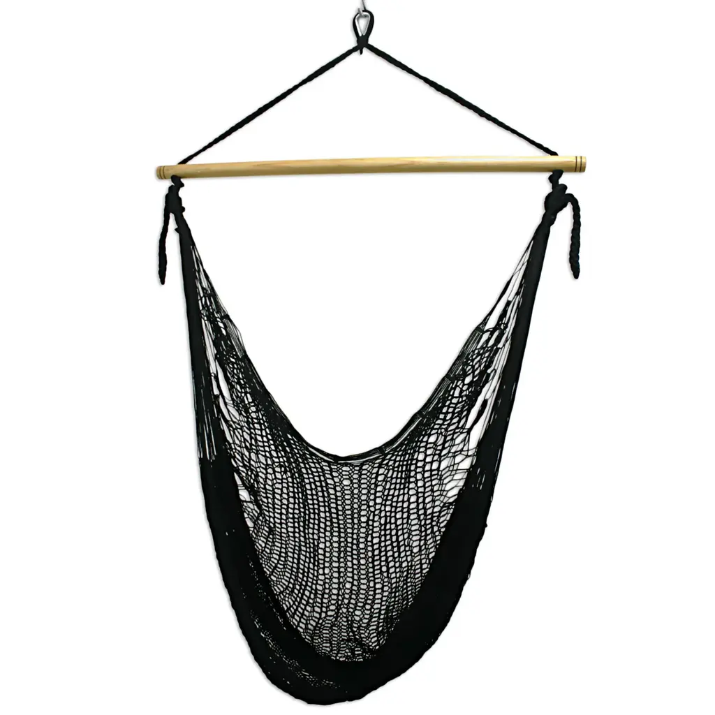 Black Nylon Hammock Swing Chair Handmade In Mexico- Caribbean Nights
