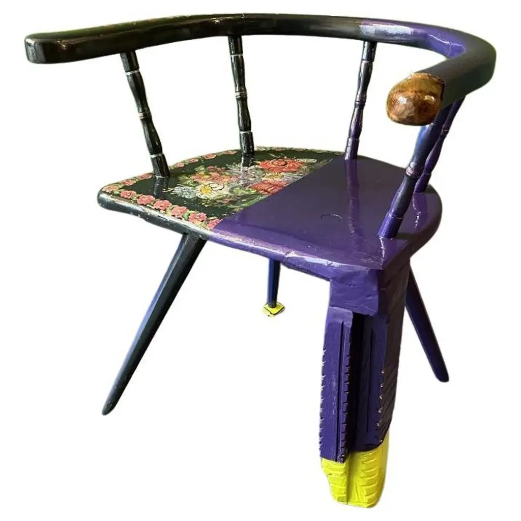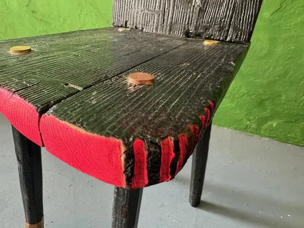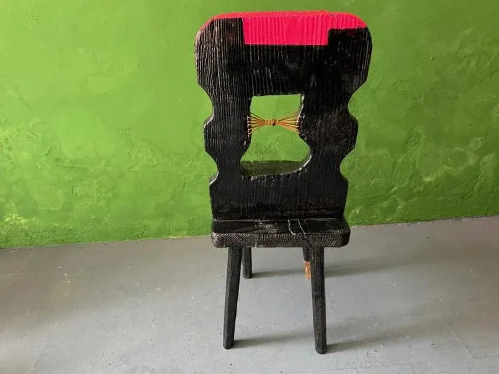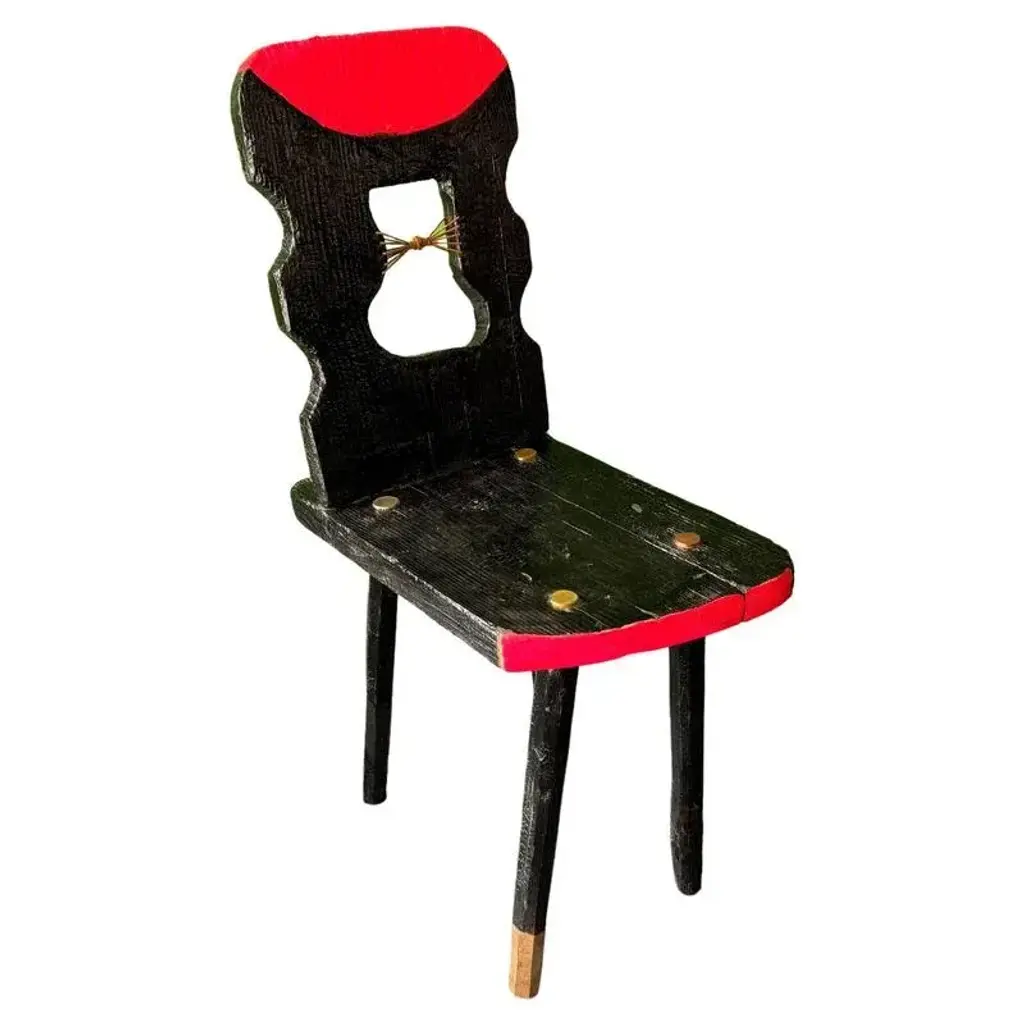 Black peak of a century chair by markus friedrich staab one of a kind dimensions: d 37 x w 58 x h 95 cm. Materials: wood, paint, leather, brass. This austrian brettstuhl was burned, lacquered, cutted and painted to give the traditional design a contemporary feeling. Brass work by goldsmith prof. this piece is attributed to the mentioned designer/maker. It has no attribution mark and no official proof of authenticity, however it is well documented in design history. I take full responsibility for any authenticity issues arising from misattribution