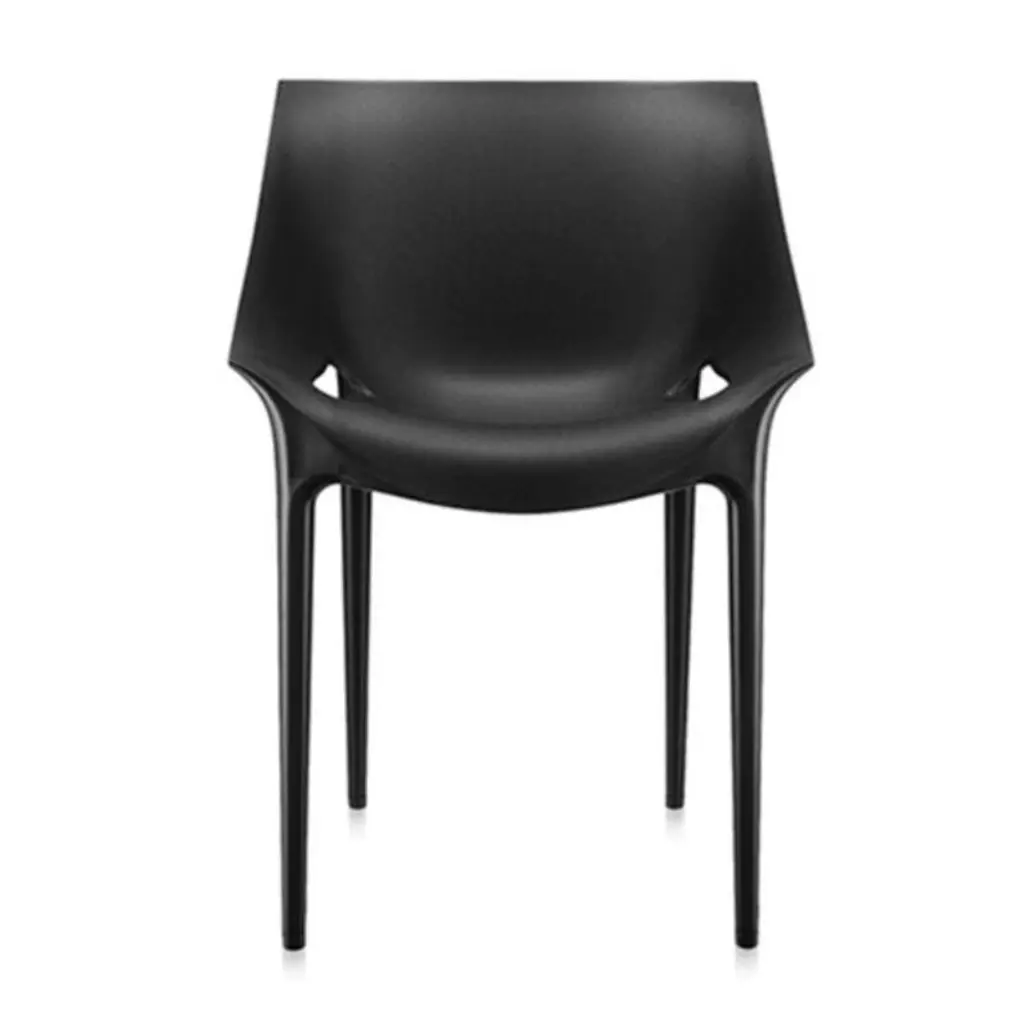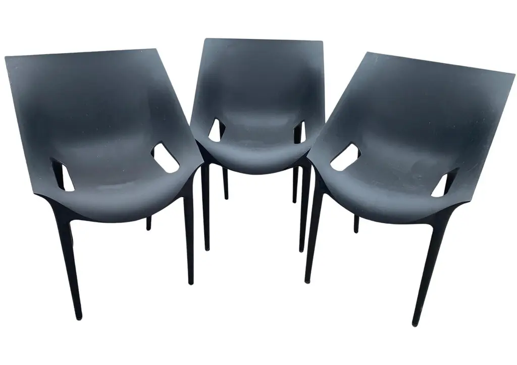 Philippe Starck & Eugeni Quitllet Designed For Kartell Black Polypropylene Stackable DR. Yes Chair Two In Stock Price Per ChairJuxtaposing varying forms into a single shape, Dr. Yes moulds rounded legs jagged outline and curved shell into a comfortable chairDr. Yes is a chair with a unique stylistic character made from highly resistant material, making it ideal for contract furnishing and outdoor use. The structure has angular lines that curve slightly downwards, ensuring a comfortable seat. It is made from modified polypropylene using gas injection technology. The inner part of the chair has an opaque finish, almost resembling a soft fabric, while the surface of the back and the legs is glossy. The distinguishing features of the chair are its comfort, ease of cleaning and wide range of colours.Additional information:Material: PlasticManufactured: 2000sPeriod: 21st CenturyOrigin: ItalyBrand: KartellDesigner: Philippe StarckDimensions: 53 W x 54.4 D x 82 H cmSeat height: 47 cmCondition: GoodCondition report: In sound structural condition with low surface wear throughout.