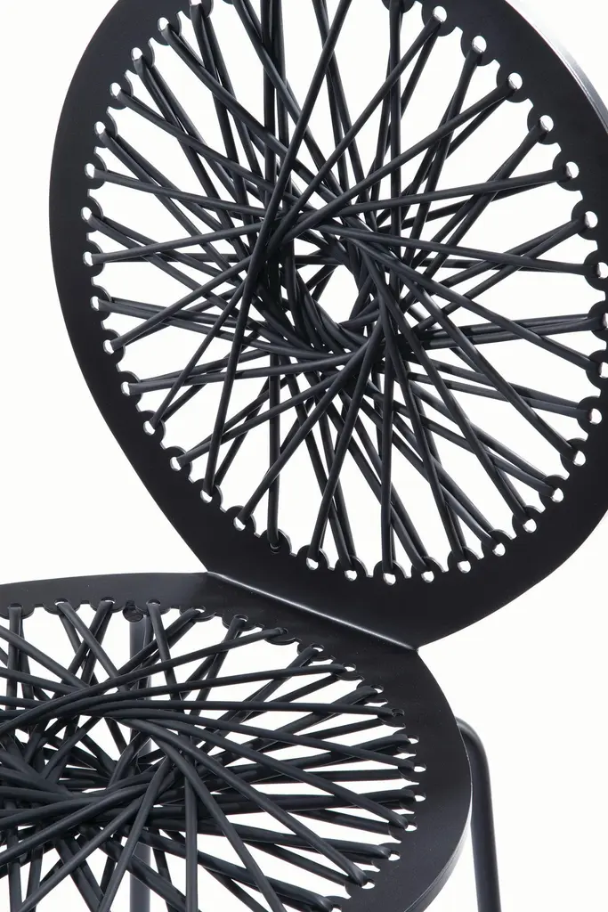 Carnevale Studio's most popular collection, “Stretch”. Through experiments with a number of different materials I chose latex, bungee and rope for their bright colors and wondrous elasticity. I wanted to bring some of the exuberance of the fashion world into my designs.Originally built and created in Brooklyn & shown at the Salone del Mobile in Milan - these new editions are made in The Netherlands, where the studio is now based.These new Dutch editions will include special editions of new colors exclusive to 1stdibs! The result is a collection of vivid pieces, after all, design should be beautiful and useful, but also fun.Handwoven by the designer, Jessica Carnevale.For Indoor use only. Handmade: slight variations in color, shape and finish may be present adding to the unique beauty of each piece.Matte Black with Woven Bungee cord to match.