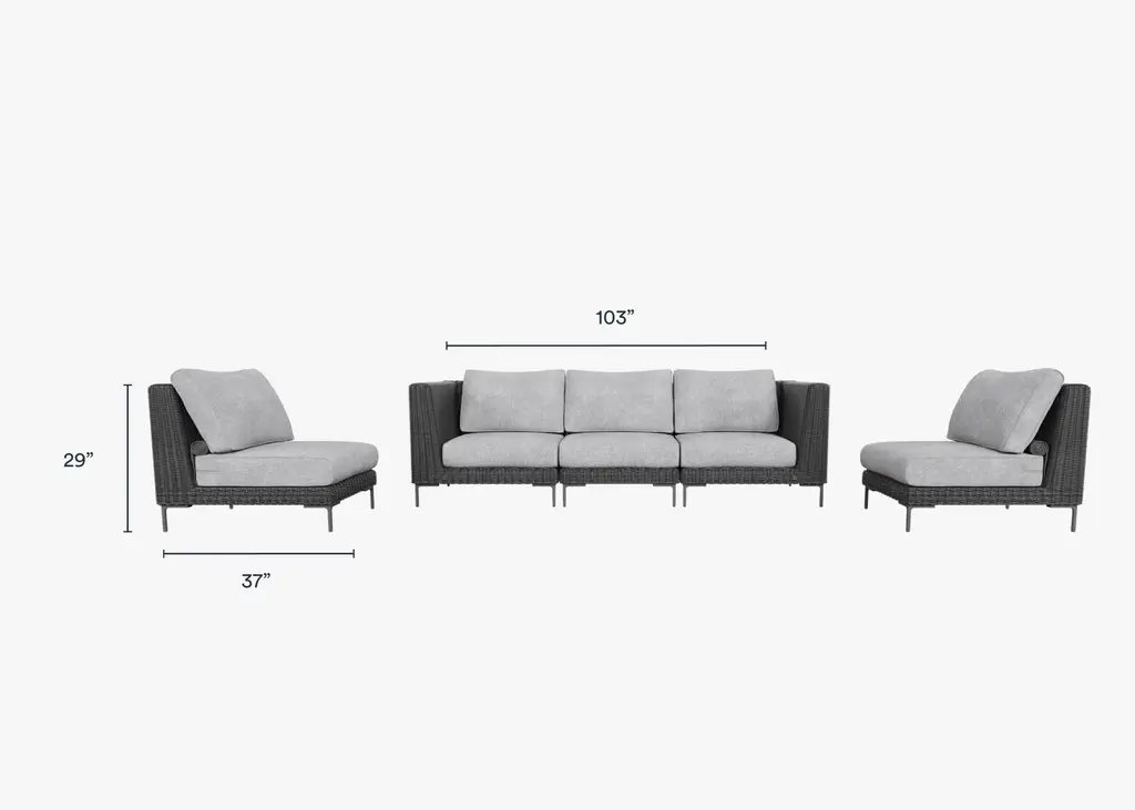 Enjoy indoor comfort outside. Stylish and durably designed from All-Weather Wicker, Outer’s modular patio furniture invites you to relax on luxuriously comfortable memory foam cushions. The built-in, easy to use OuterShell® cover protects the cushions when not in use, and features Velcro that secures it in place and a handle for convenient carrying and storage. Includes 2 corner chairs and 3 armless chairs that you can reconfigure.