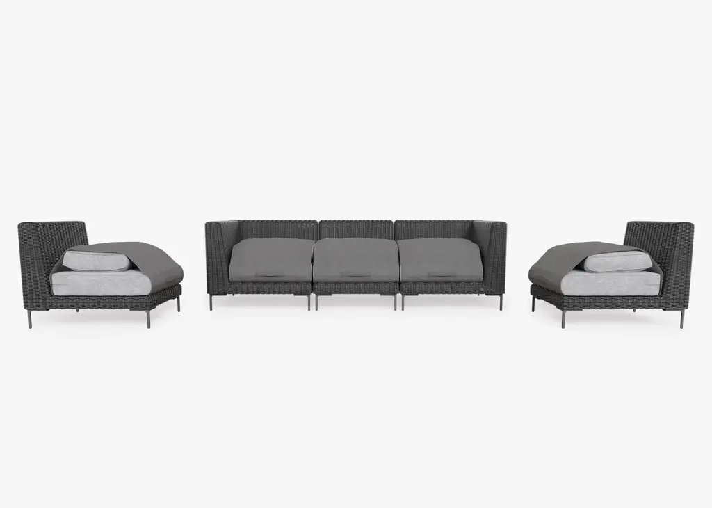 Black Wicker Outdoor Sofa With Armless Chairs - 5 Seat