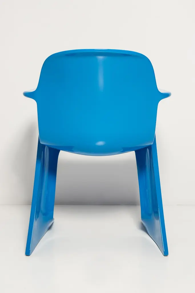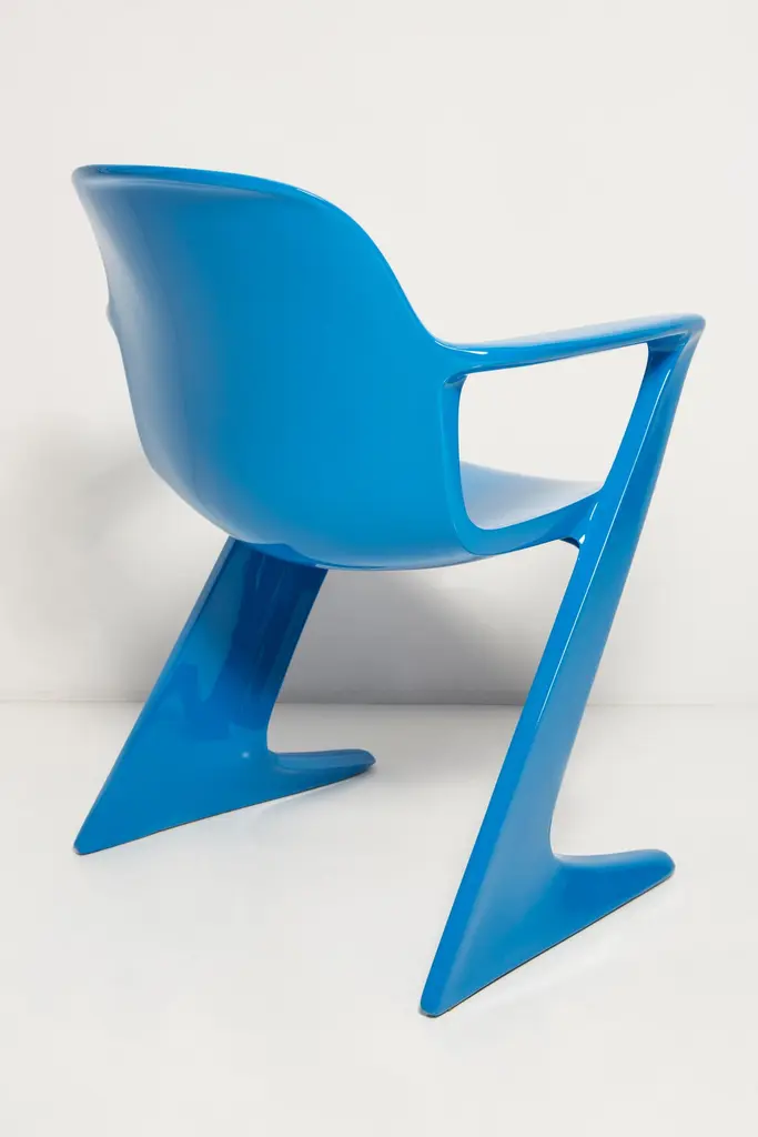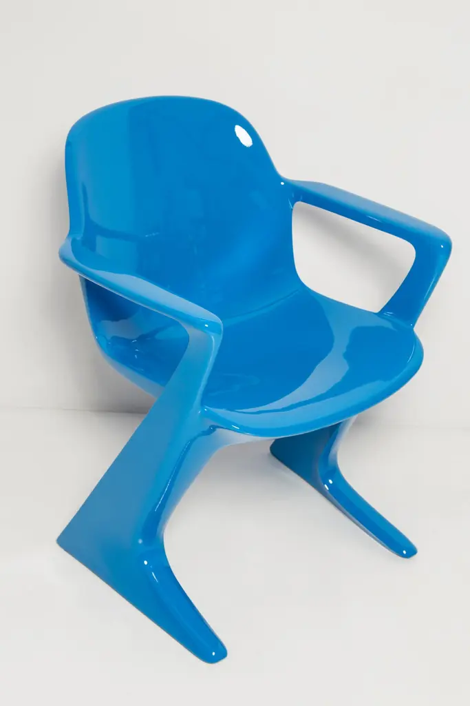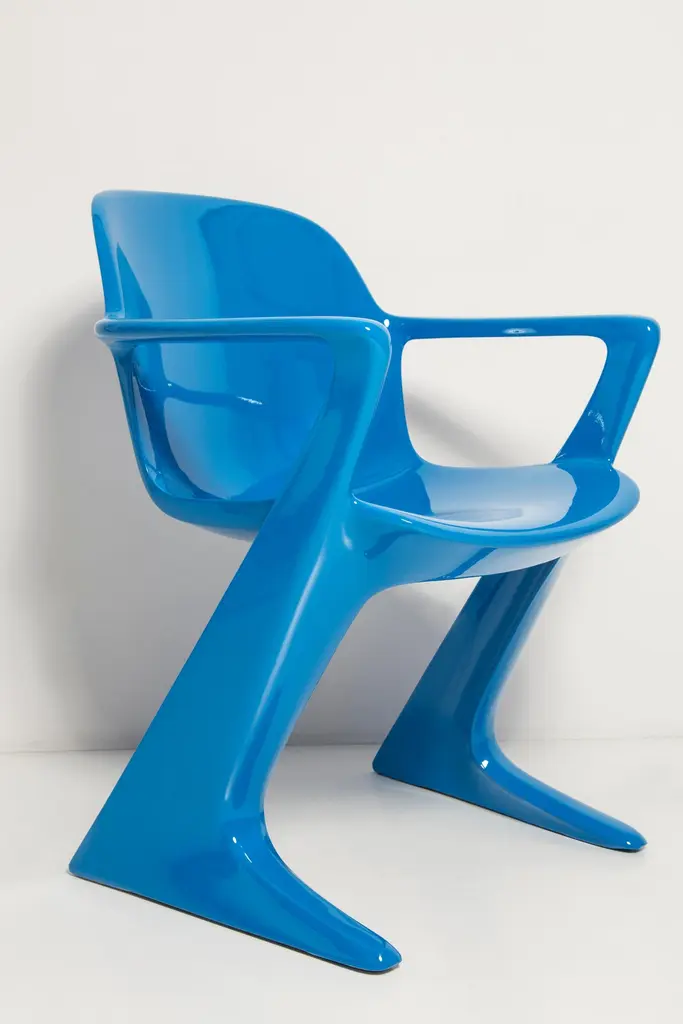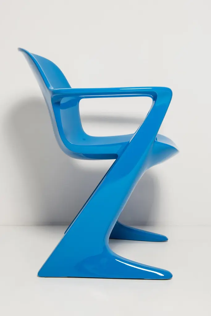 The z.stuhl chair, designed by Ernst Moeckl (1931-2013) in the 1970s, is a cantilever chair made of polyurethane, which is available with and without armrests. In the vernacular, the chair is known by its geometry-related names such as "squatting man", "kangaroo" and "Z-chair". German Version of the Panton chair. Also called kangaroo chair or variopur chair. Produced in eastern Germany.Chair is after full renovation, new glossy blue lacquer. For this chair we used RAL 5015 classic blue color. This model is extremely comfortable! Beautiful organic shape make them timeless and fits to every interior. We can prepare also set of 4 or 6 or more, also in another RAL/Pantone color.Please check the color samples and ask for more informations.