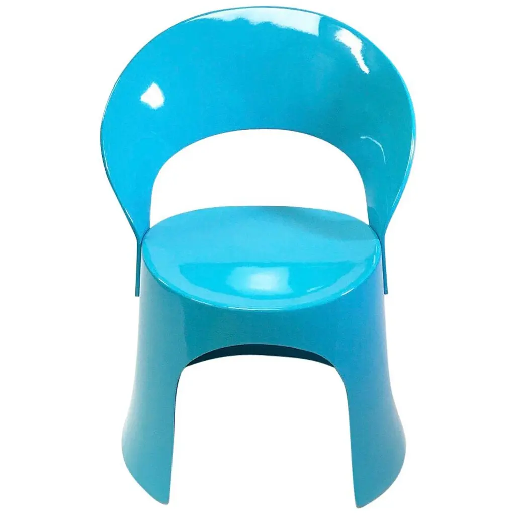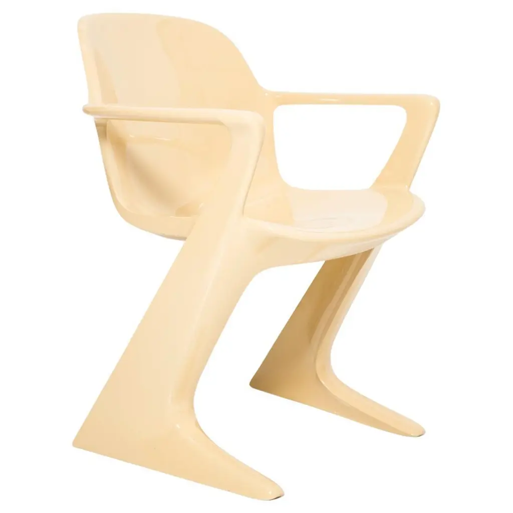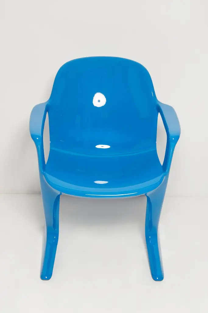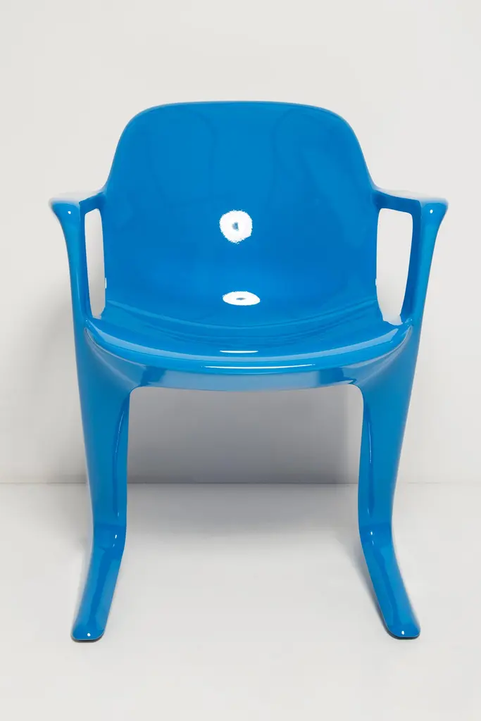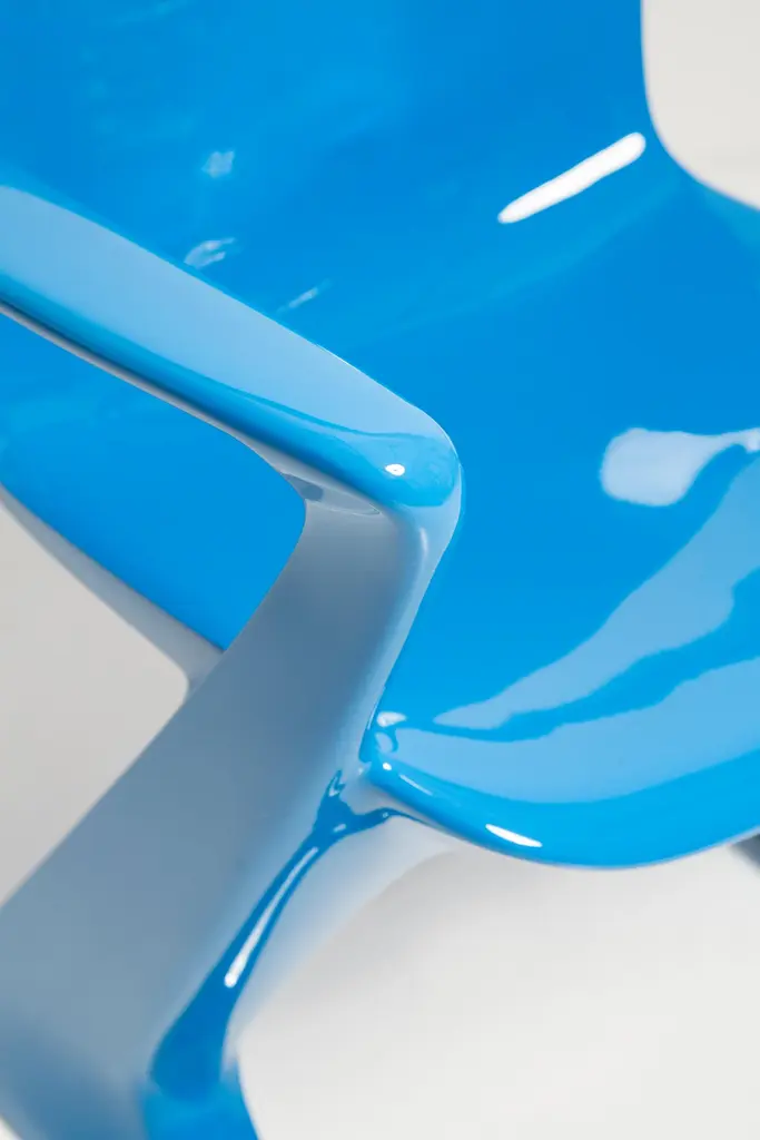 The z.stuhl chair, designed by Ernst Moeckl (1931-2013) in the 1970s, is a cantilever chair made of polyurethane, which is available with and without armrests. In the vernacular, the chair is known by its geometry-related names such as "squatting man", "kangaroo" and "Z-chair". German Version of the Panton chair. Also called kangaroo chair or variopur chair. Produced in eastern Germany.Chair is after full renovation, new glossy blue lacquer. For this chair we used RAL 5015 classic blue color. This model is extremely comfortable! Beautiful organic shape make them timeless and fits to every interior. We can prepare also set of 4 or 6 or more, also in another RAL/Pantone color.Please check the color samples and ask for more informations.