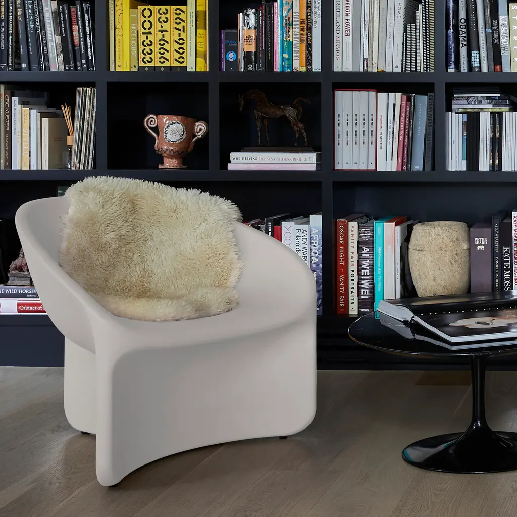 Discover the Bluff Chair by Heller. Conceptualized by Icelandic designer Hlynur Atlason, the Bluff Chair evokes a coastal formation, captivating viewers with what’s there, as much as what’s not. Set on a curved tripod base, the Bluff features a scooped seat designed for comfort and support. “By working carefully with angles and proportions, we’re able to create an experience where you’re no longer aware of the chair when you’re seated,” says Atlason. This innovative chair is available in a wide range of elevated hues that harmonize with nature. Sustainably made in the USA. Suitable for indoor-outdoor use.