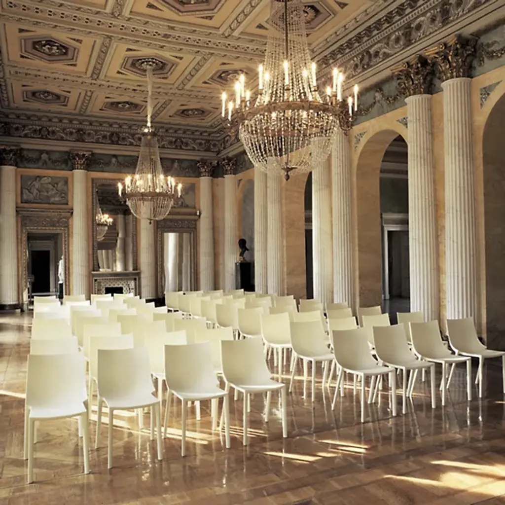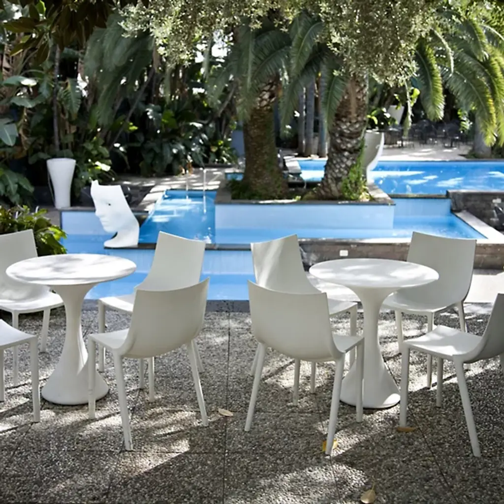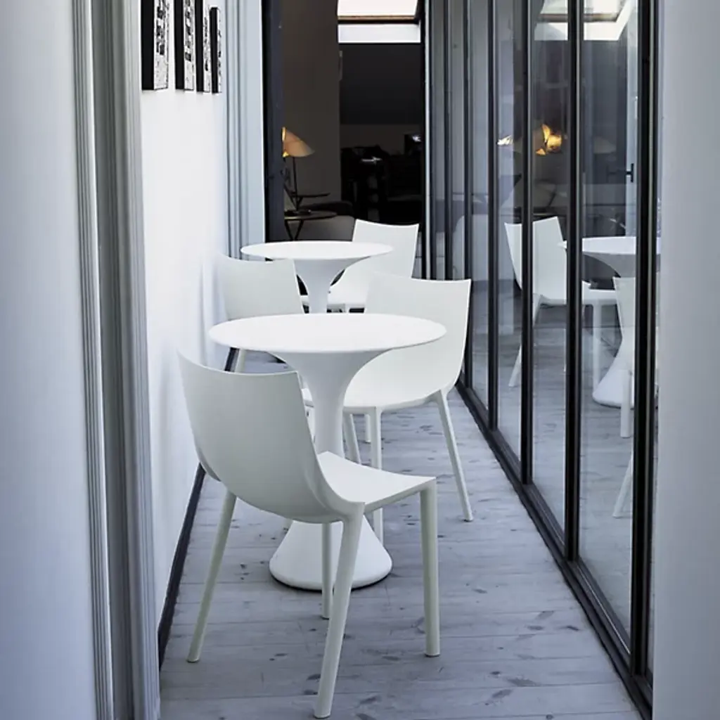 The Bo Indoor/Outdoor Stackable Chair from Driade is designed by Philippe Starck. With its elegantly curved and armless design, this chair embodies the essence of Italian style. Crafted from durable polypropylene, it is made for longevity. The stackable feature adds versatility to your space, allowing for easy storage and adaptability to various settings. Elevate your space with this streamlined seating solution and bring designer quality to your indoor or outdoor living space.