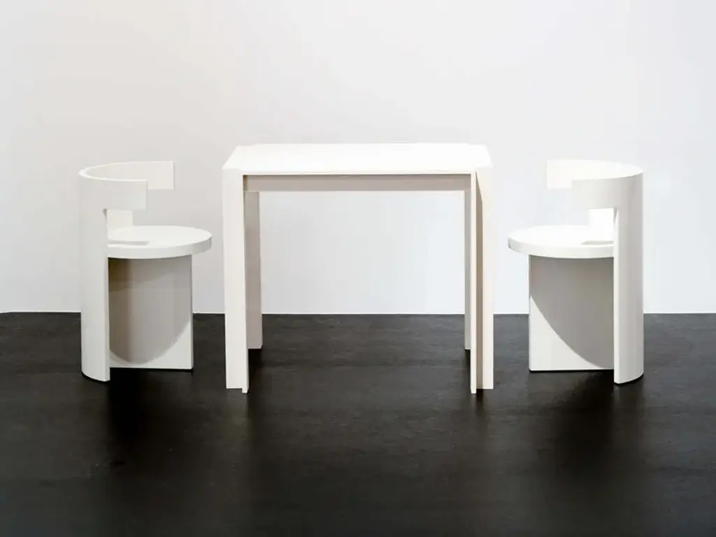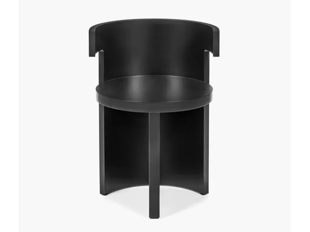 Boho is a beech wood chair with armrests.The solid form of the sculptural Boho chair offers a counterpoint to the light elegance of the Elé chair, with a substantial yet graceful presence. Occupying the same dimensional footprint as the Elé, the geometry of a cylinder is sliced to create a round seat, with a rounded back that rises to 69 centimetres and extends out to form two small arms along the top edge. The seat is supported by a single plane at a 45-degree angle to the back, creating a vertical rhythm that contrasts with the horizontal circles of the seat and back.It is the first time that Ann Demeulemeester and her life partner, Patrick Robyn, have designed a complete line of furniture. They have made one-off pieces, such as the Table Blanche for Bulo. As always, the starting point came from an own need or personal interest. “I make something because I’m missing it, I want it, and I can’t find it”, says Demeulemeester. The realisation developed into them wanting to translate these furniture pieces, designed for their own use, into accessible, timeless pieces that people would also want to integrate and cherish at home. Their furniture remains true to the couple’s distinctive aesthetic style. As with all their previous work, a light-hearted game between shadow and light is clearly visible, as well as a kind of refined decadence requiring an involved, intelligent owner. They don’t want to prescribe the use of these pieces but rather make suggestions for their use. At its heart, Demeulemeester’s work has always been an exploration and a celebration of contrasts - a beauty found in the interplay between strength and fragility, structure and nonchalance, the poetic and the radical, aesthetics and functionality. This is also the soul of the furniture collection and is further reflected in a dialogue between proportions and geometry. Linen, oak, wool, velvet, canvas - these materials form the heart of the collection and make you want to touch, caress and feel them. By experimenting with yarns, fibres and pigments, the designers have created a unique palette of textures and colours exclusively for the collection. There is the anticipated deep black and off-white, and also moss green, soft pale pink, a chic cream and warm roasted orange. All furniture is made of wood veneer or solid wood, FSC certified, and finished with either a lacquer or a water-based stain, which protects against dirt and allows you to clean the wood with a slightly damp cloth. The lacquers and stains are always sprayed (not applied with a brush). Customers should always be aware that wood is a natural material that can show imperfections and still undergo changes over time (shrinkage/expansion, change of colour under the influence of light). For the upholstered furniture, the fabrics are woven in Belgium and exclusively designed and confectioned for this collection.