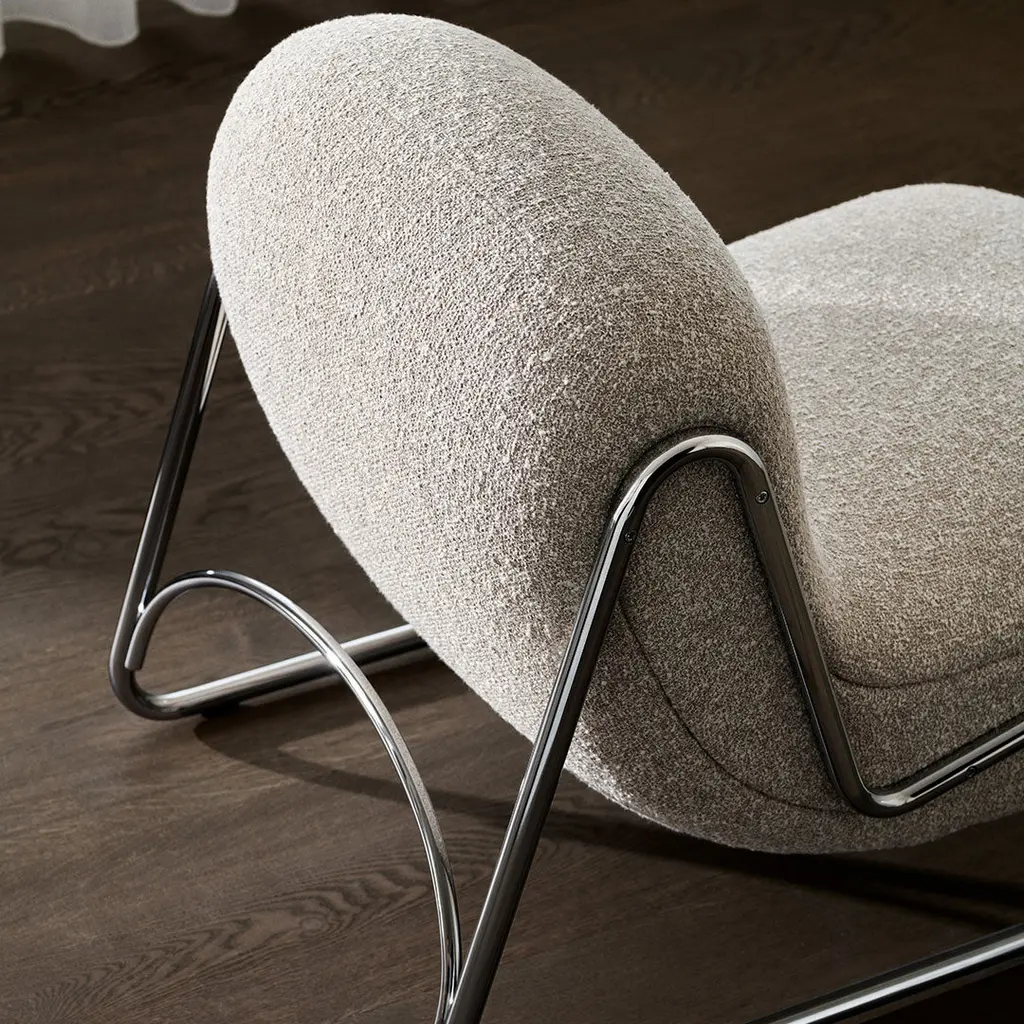The Boho Chair draws inspiration from the soft, flowing silhouettes of the 1970s, while its mirror chrome base reflects the crisp, geometric style of the 1980s. Boho features a soft, playful shape with a gently bulging backrest that provides the chair with form and a unique silhouette, while preventing it from looking like a pouf.