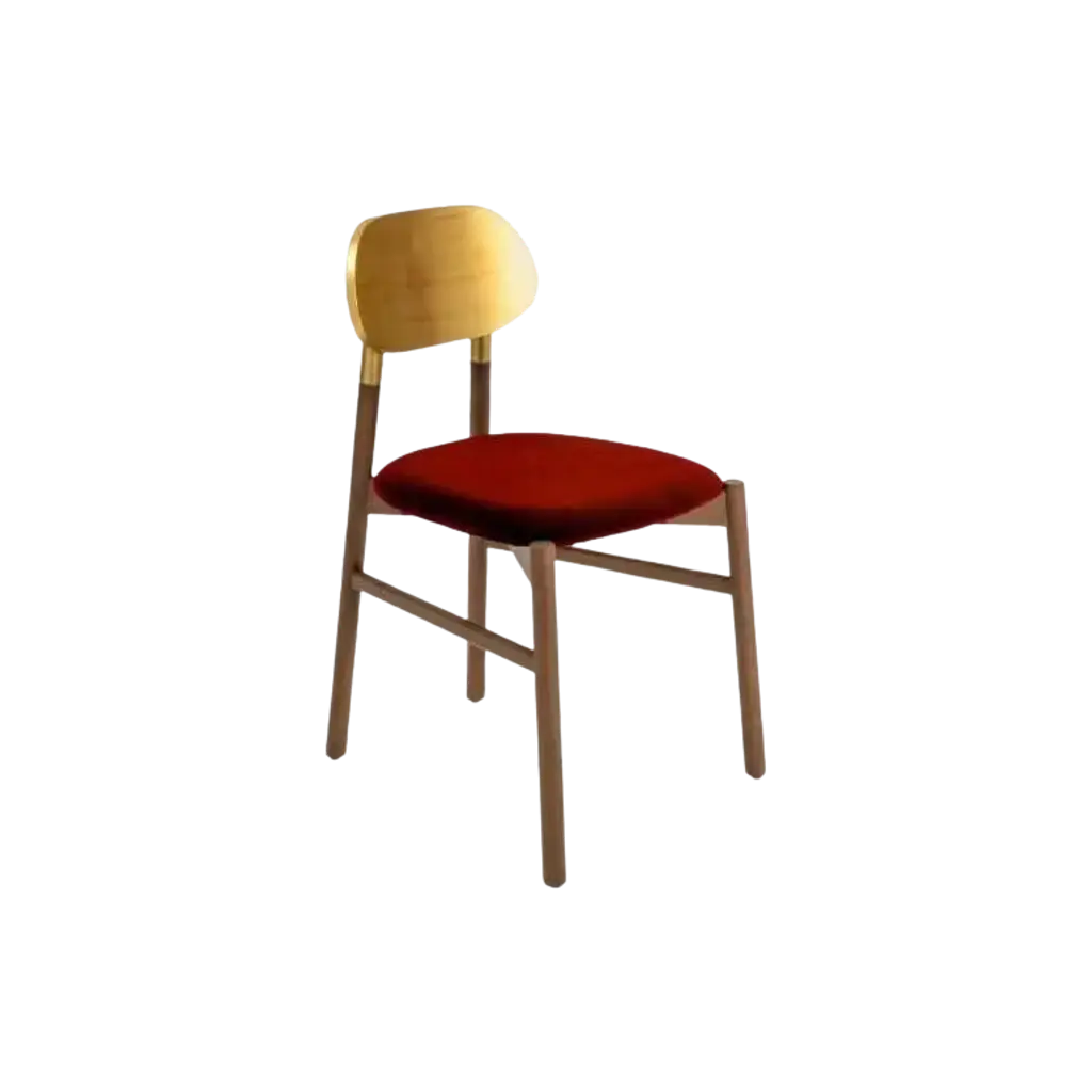Bokken upholstered chair, Canaletto, Menta by Colé Italia with Bellavista/PicciniDimensions: H 81.7 D 49 W 53.5 cmMaterials: Canaletto Walnut Finishing, Padded seat - Cat C: VelvetforthyAlso Available: COM Fabric, Fabric Cat A, Fabric cat B, Leather Cat P, and Natural Beech, Beech Structure Stained, Gold or Silver LeafTC: C.O.M. fabric - send us your own materialCA: Cat A - Angel (polypropylene), Ganesha (synt. leather), Nord Wool (felt)CB: Cat B - Tiffany (polyester), Lana (aquaclean)CC: Cat C - Velvetforthy (Velvet), Topia (wool), Novum (Wool), Opera (felt)CP: Cat P - Milano (full grain leather)An essential chair in the form yet precious in colors. Tapered and elongated, the legs of the seat are inspired by the bokken, a wooden replica of the Japanese sword used in the training of the Japanese martial art of Aikido and Kendo. Bokken chair is characterized by the backrest in precious colors: blue aquamarine, ruby red off-white, anthracite, and authentic gold or silver leaf, to match the structure of natural or walnut dyed beech wood. These chairs are customizable like all the brand’s products to meet the specific demands of the contract sector.Colé is a young Italian design brand, with a high-end production 100% made in Italy. Born from the experience of Matteo De Ponti, architect, who grew up in one of the most outstanding Milanese design families, and the artistic sensibility of Laura Macagno, degree in Economics and passionate of art and design. Our mission is to create design icons, beautiful and comfortable pieces that can stand the test of time, furnishing houses of international and sophisticated clients, and realized with craftsmanship, thus unique. “We love objects which own deep roots, excellent quality, and a strong evocative power. Archetypal forms dressed with new beauty without losing their classical composure”.Our expressive research is inspired by the utopian force of Italian eminences grises architects and designers of the ’50s, the Scandinavian design, the Bauhaus, ethnic handcraft and houses of famous writers of the XX century, all different as a style but united by the intense soul of those who worked and lived there.