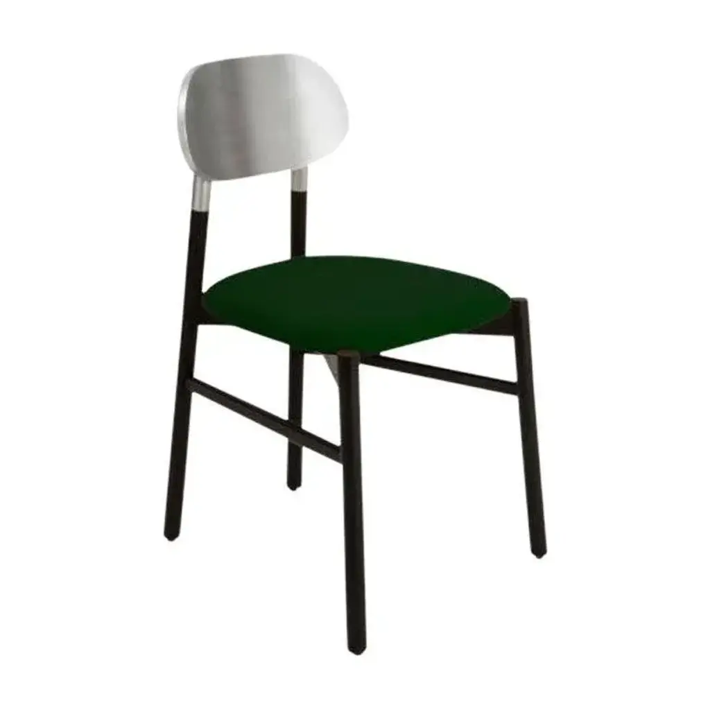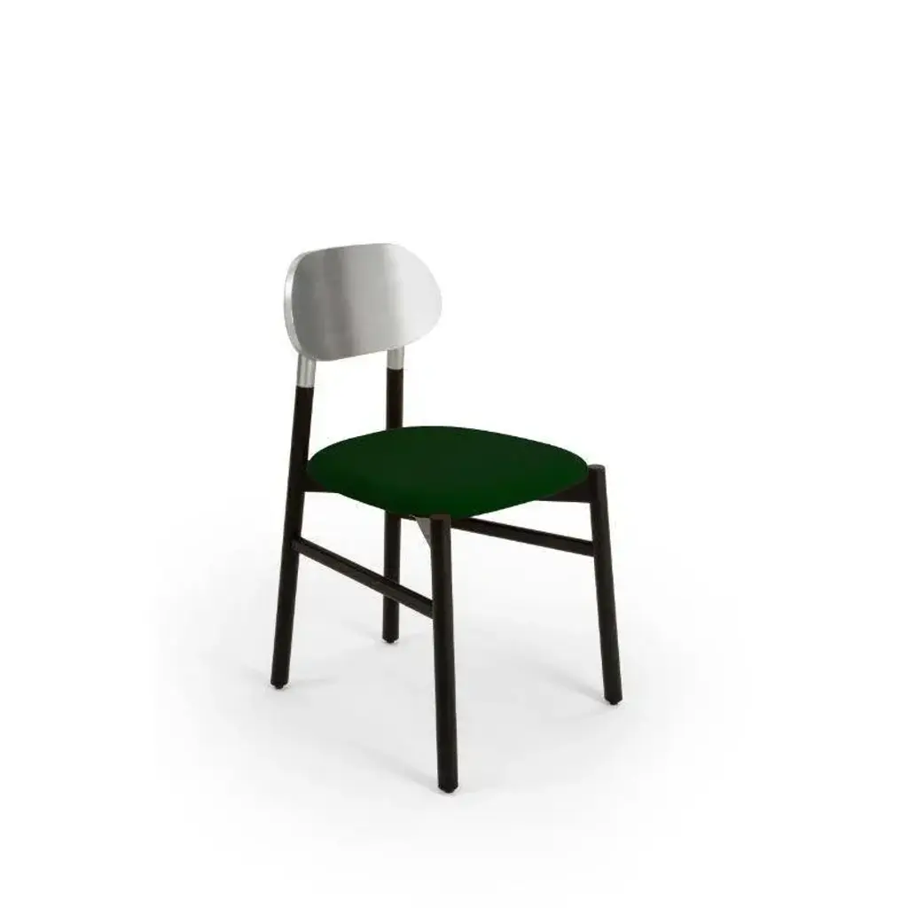 Bokken upholstered chair, black & silver, smeraldo by colé italia with bellavista/piccini dimensions: h 81.7 d 49 w 53.5 cm materials: solid beech wood structure, gold or silver leaf back, padded seat - cat c: velvetorthy. Ca: cat a - angel (polypropylene), ganesha (synt. Leather), nord wool (felt) cb: cat b - tiffany (polyester), lana (aquaclean) cc: cat c - velvetforthy (velvet), topia (wool), novum (wool), opera (felt) cp: cat p - milano (full grain leather) an essential chair in the form yet precious in colors. Tapered and elongated, the legs of the seat are inspired by the bokken, a wooden replica of the japanese sword used in the training of the japanese martial art of aikido and kendo. Bokken chair is characterized by the backrest in precious colors: blue aquamarine, ruby red off-white, anthracite, and authentic gold or silver leaf, to match the structure of natural or walnut dyed beech wood. These chairs are customizable like all the brand’s products to meet the specific demands of the contract sector. Colé is a young italian design brand, with a high-end production 100% made in italy.