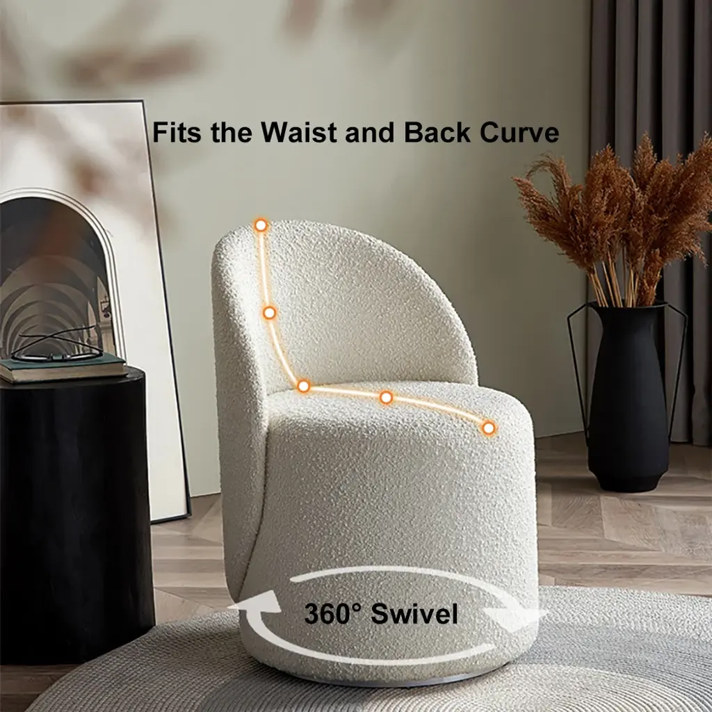 Boucle Round Back Swivel Vanity Stool Accent Chair