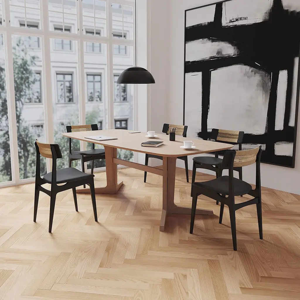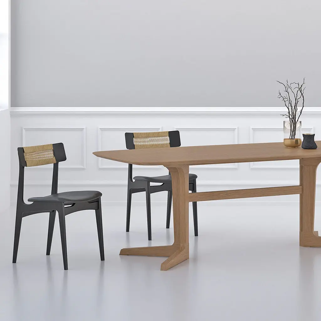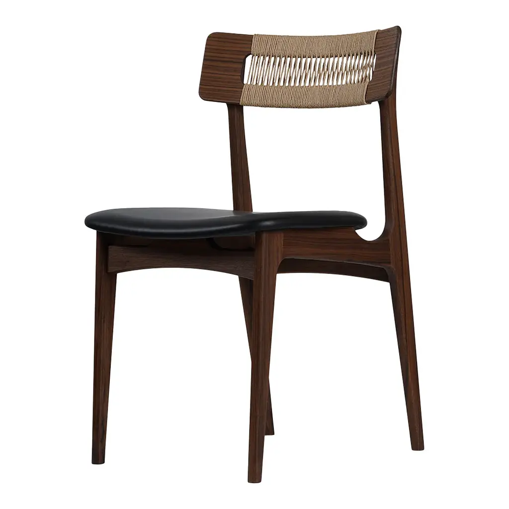 Chair No. 140, a light and elegant chair with beautiful clean lines and timeless expression. The chair's characteristic backrest brings back nature and embraces today's modern life. The curved seat, which is crafted from multiple layers of veneer, appears to float above the legs and is ideal for upholstering. On request, the seat can be upholstered in a variety of fabrics and leather and complements a variety of interiors and styles. The curved backrest is available in hand-woven Danish natural paper cord. Chair No. 140 was designed in 1956 and taps into the essence of Danish Modern with its clean lines, functional design and expert craftsmanship. Because of the many upholstering possibilities, the BPS140 chair will fit perfectly into both private homes and public spaces.
