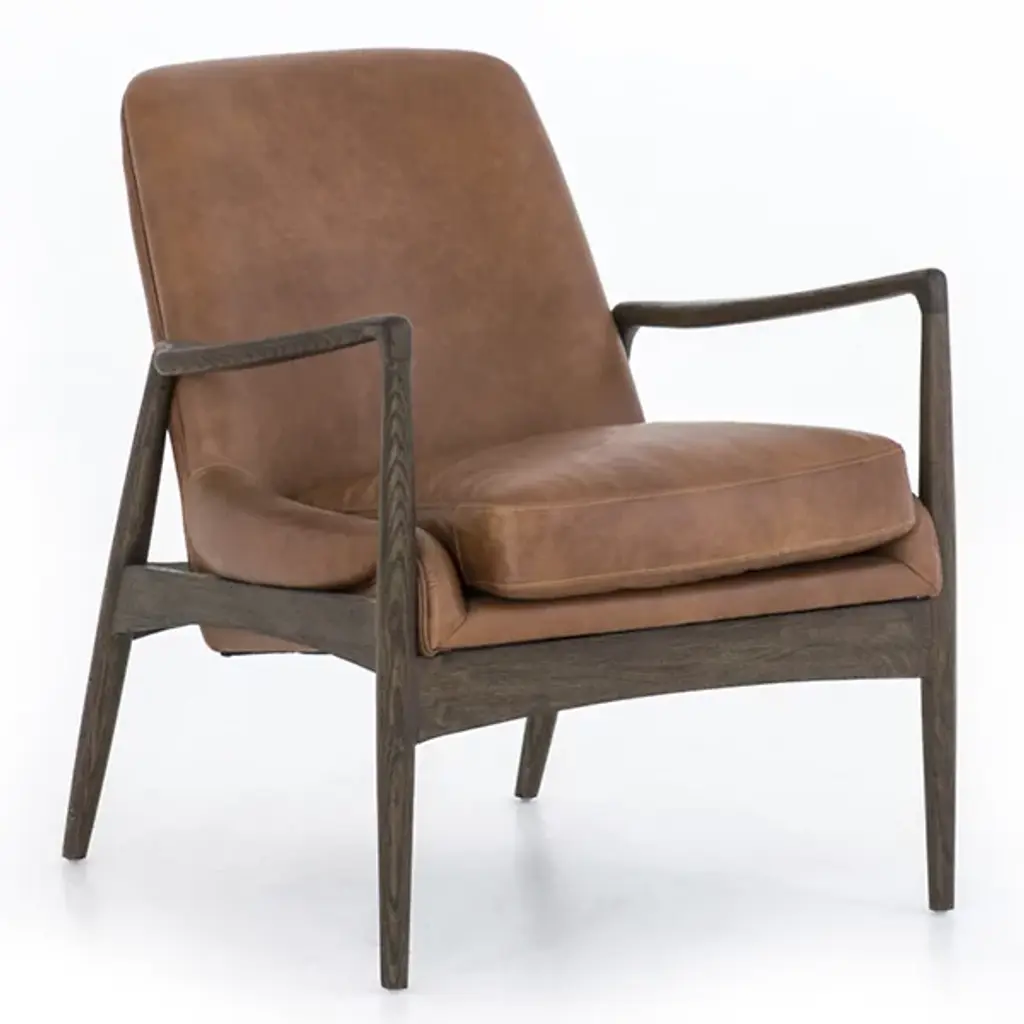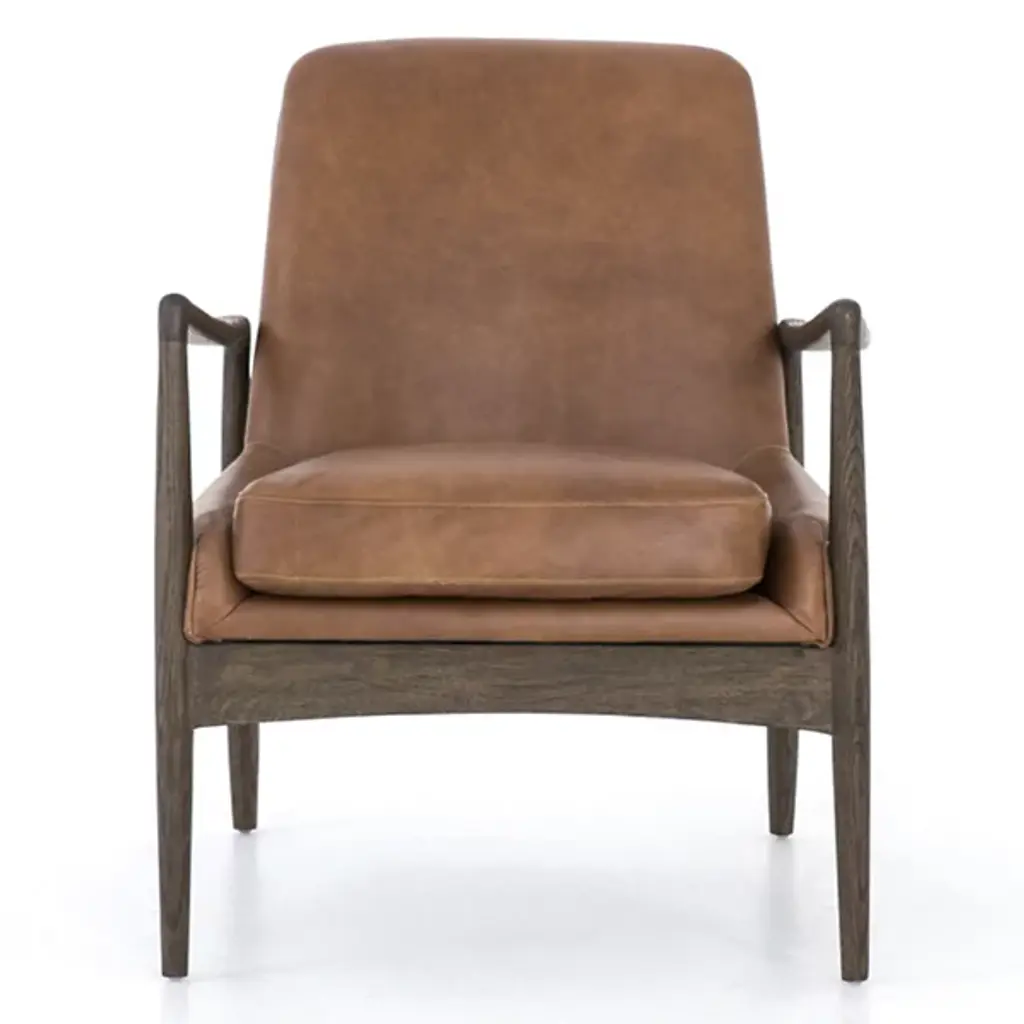 The Braden Chair by Four Hands is a stately addition to your contemporary living space. This chair features a seatback that is slightly reclined for your comfort. The Braden Chair’s framework is composed of durable nettlewood. The interconnected nature of your chair’s arms and legs gives it an architectural design element that draws in your eye. A handsome seat of top-grain leather provides postural support while you remain at rest.