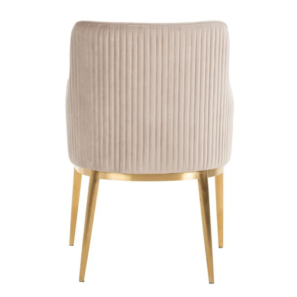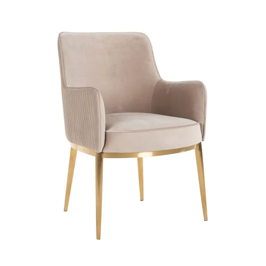 The Breeze armchair by OROA is pure luxury with its velvet upholstery and brushed gold finish legs. It has high backrest and plush seat for complete coziness. A stylish and functional piece worth investing in.