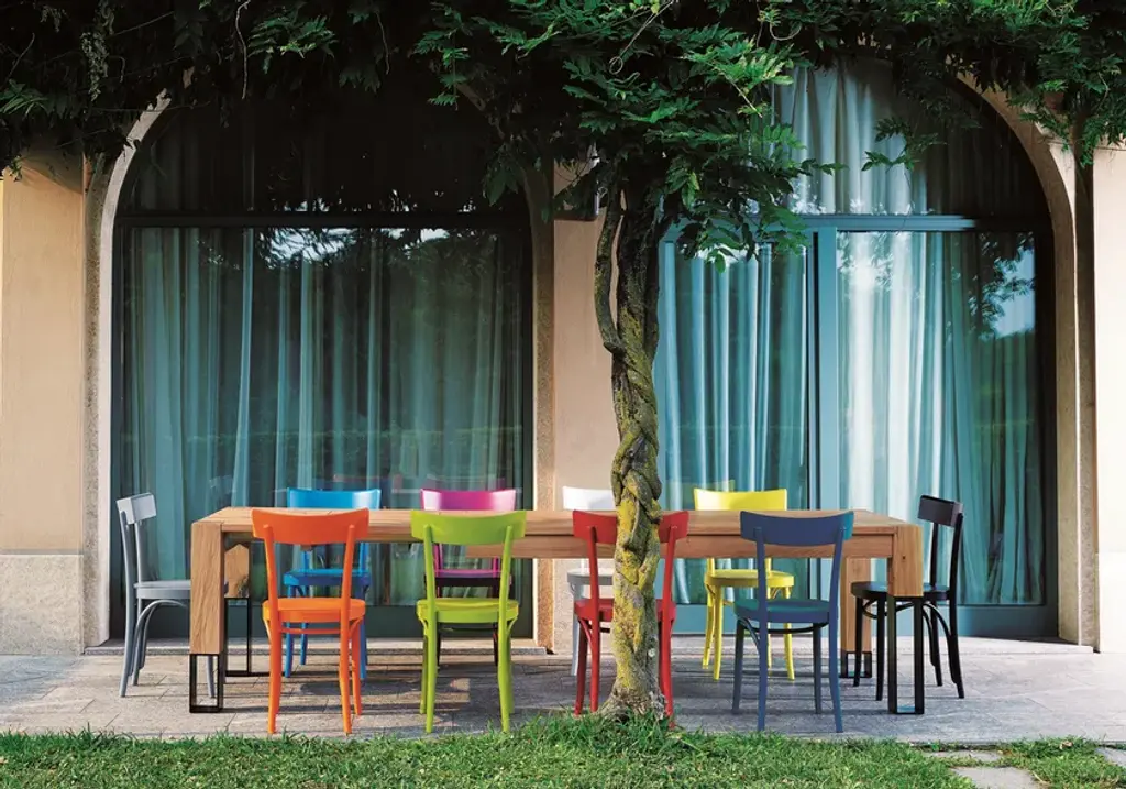 Brera is a chair in lacquered beech wood, available in a wide range of colours.Absolute protagonist in the furnishings of the Milanese taverns of the roaring twenties, the Brera chair, while retaining the poignant charm of those golden years, has been revisited and is now published in a wide range of impact colors. Its distinctive feature? The sinuous line of the arch placed under the seat.