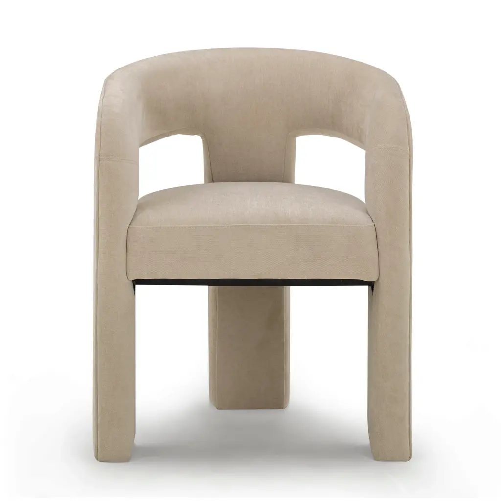 The seat harks back in form to the aesthetics of mid-century bourgeois furnishings. The singular cut in the shell gives added character to a classic, composed elegance, as well as ensuring lightness and functionality. Solid wood and curved plywood structures padded with polyurethane foam in different densities. Pre-upholstery in polyester wadding, upholstery in fabric covering. More fabrics and leathers are available, please contact the concierge for more information.