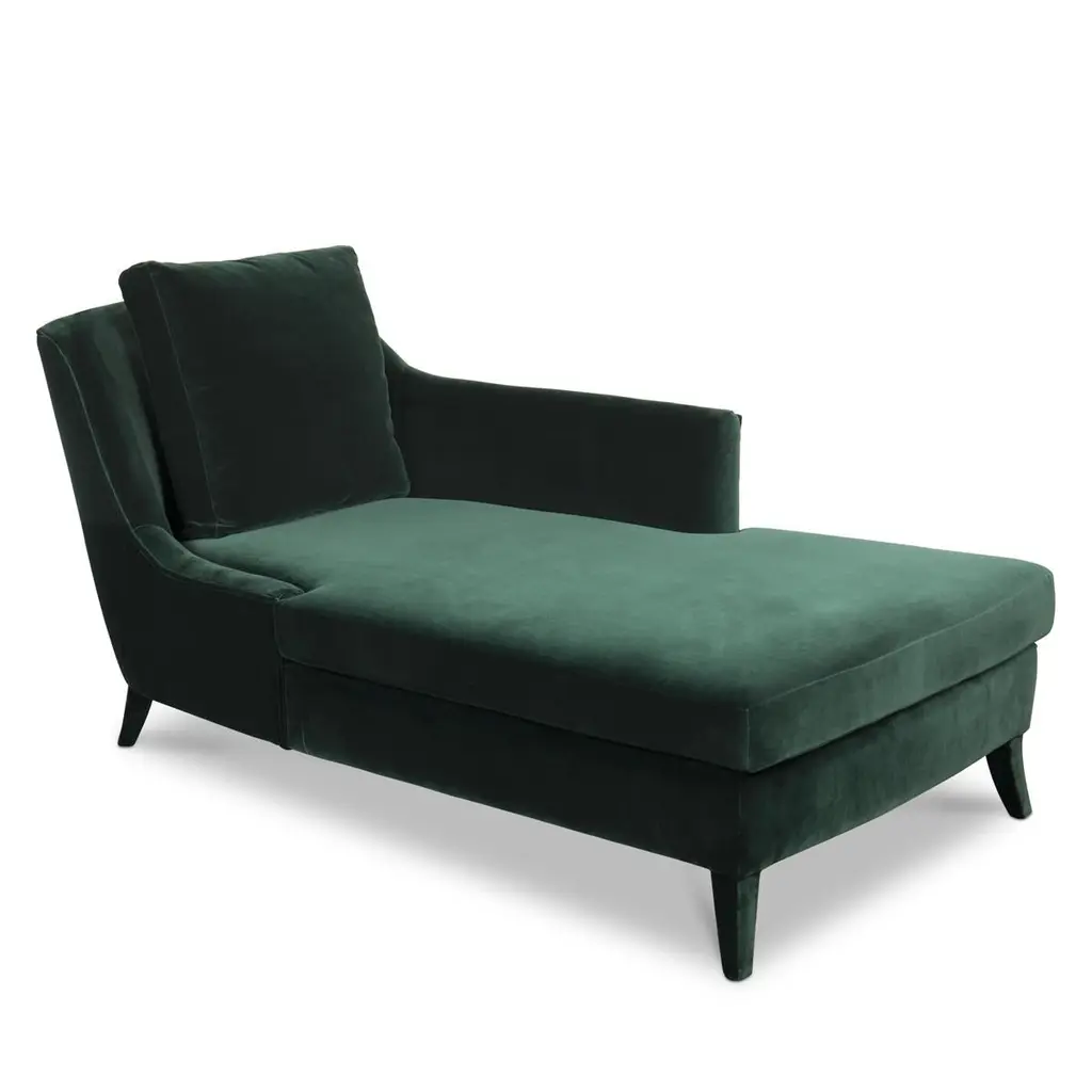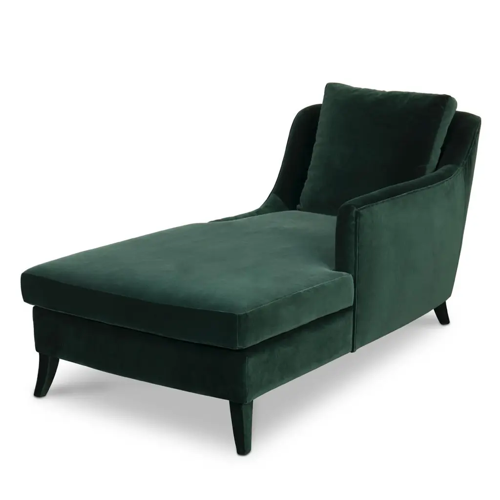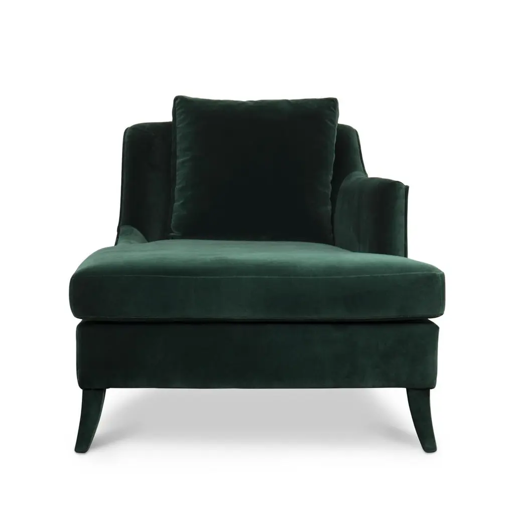 Long chair British green with solid wood structureand covered with cotton velvet fabric. Fully upholsterylong chair. Also available in British green armchair.