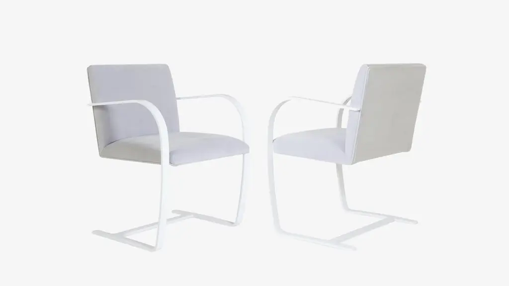 The definition of minimalism in a singular design, achieved by the great Ludwig Mies van der Rohe in 1929; the Brno flat-bar chair is just that. We have edited these contemporary iteration authentic originals in a way that’s never been done before.We have been restoring Brno flat-bar chairs for years right in our very own workroom. The chairs shown feature a rich velvet from our extensive fabric collection in the color dove. These “refined originals” evolve Mies’ famed 1929 design with a glistening lunar gloss powder-coated finish on their frame, a process which achieves an incredibly durable coating that will outlast countless generations to come. This finish, offered exclusively by us, takes this design Classic to the next level and celebrates it as the art form it truly is.