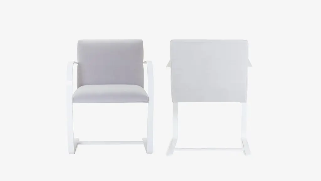 The definition of minimalism in a singular design, achieved by the great Ludwig Mies van der Rohe in 1929; the Brno Flat-Bar chair is just that. We have edited these contemporary iteration authentic originals in a way that’s never been done before.We have been restoring Brno flat-bar chairs for years right in our very own workroom. The chairs shown feature a rich velvet from our extensive fabric collection in the color Dove. These “refined originals” evolve Mies’ famed 1929 design with a glistening Lunar Gloss powder-coated finish on their frame, a process which achieves an incredibly durable coating that will outlast countless generations to come. This finish, offered exclusively by us, takes this design classic to the next level and celebrates it as the art form it truly is.