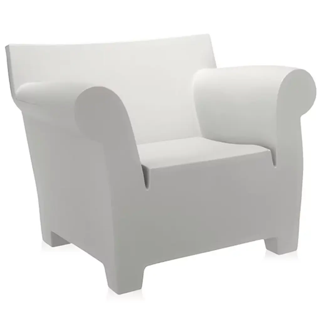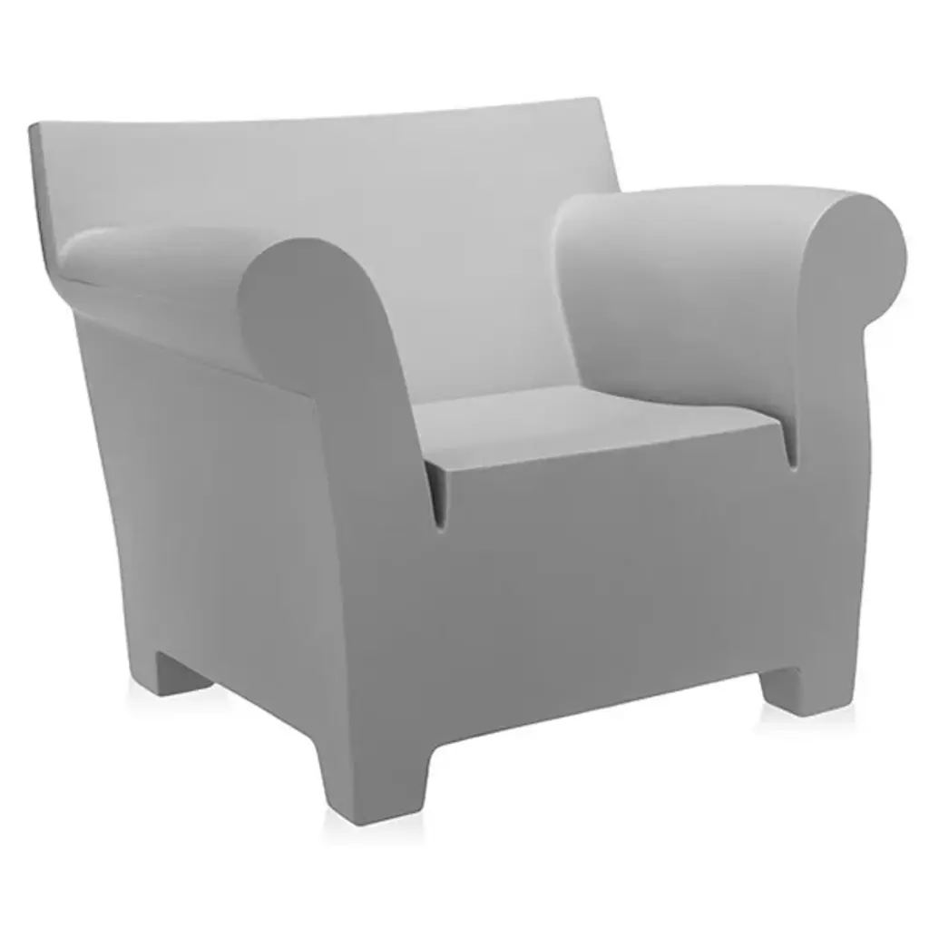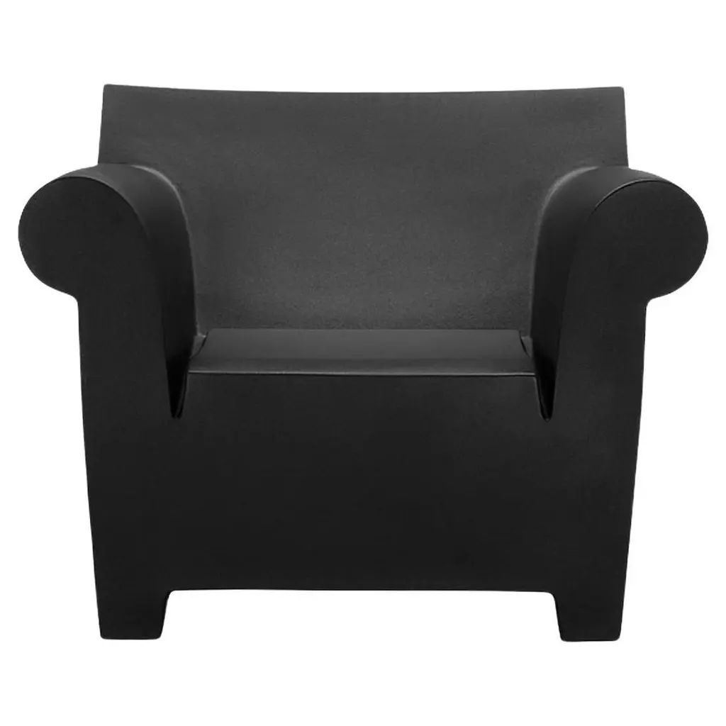 The Kartell Bubble Club Chair, a Philippe Starck design, is made of smooth and durable batch-dyed polyethylene. The chair can live perfectly outside, but is also great for furnishing internal communal spaces, waiting rooms and public places. It is characterized by the soft lines of the arms in contrast with the more essential and rational line of the back. It is the ideal example of the Kartell design concept of pairing classic style with modern materials.