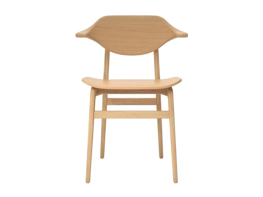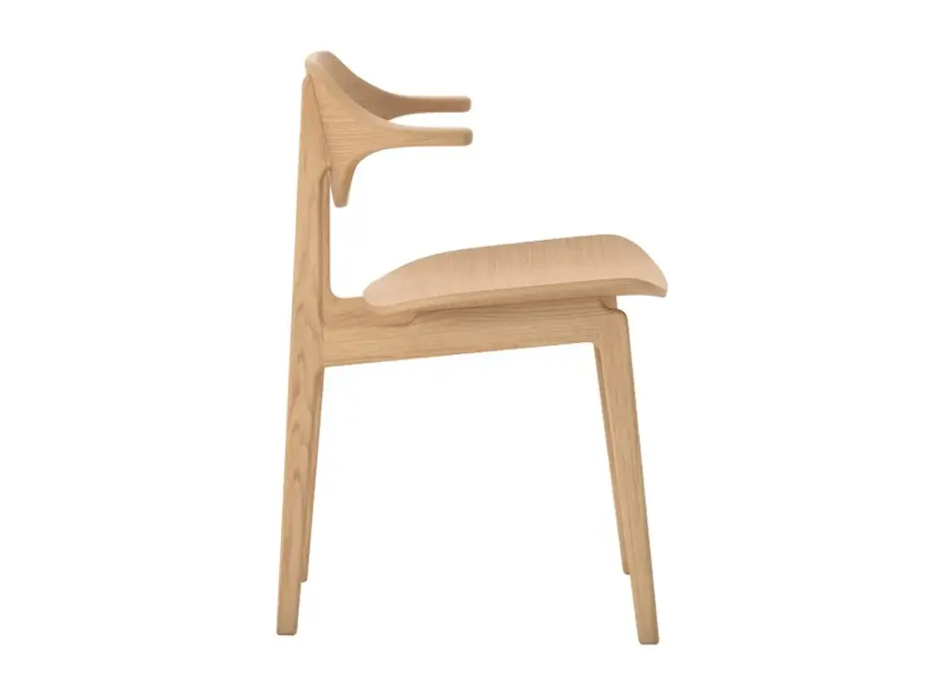 With rich wood grain, the Bufala Chair has a distinctive appearance to match its high-quality, solid-wood construction.The back is made with a special production technique pressing multiple layers of oak veneer in a compression mold, forming the characteristic buffalo horn shape that provides back and arm support.Material: FSC certified oak with upholstered seat or without upholsteryReplaceable upholstery platesThe back is made of pressing 36 layers of oak veneer in a special compression moldFrame based on the proven L2 tested NY11 Chair frameMade in LatviaSleek design with an edge