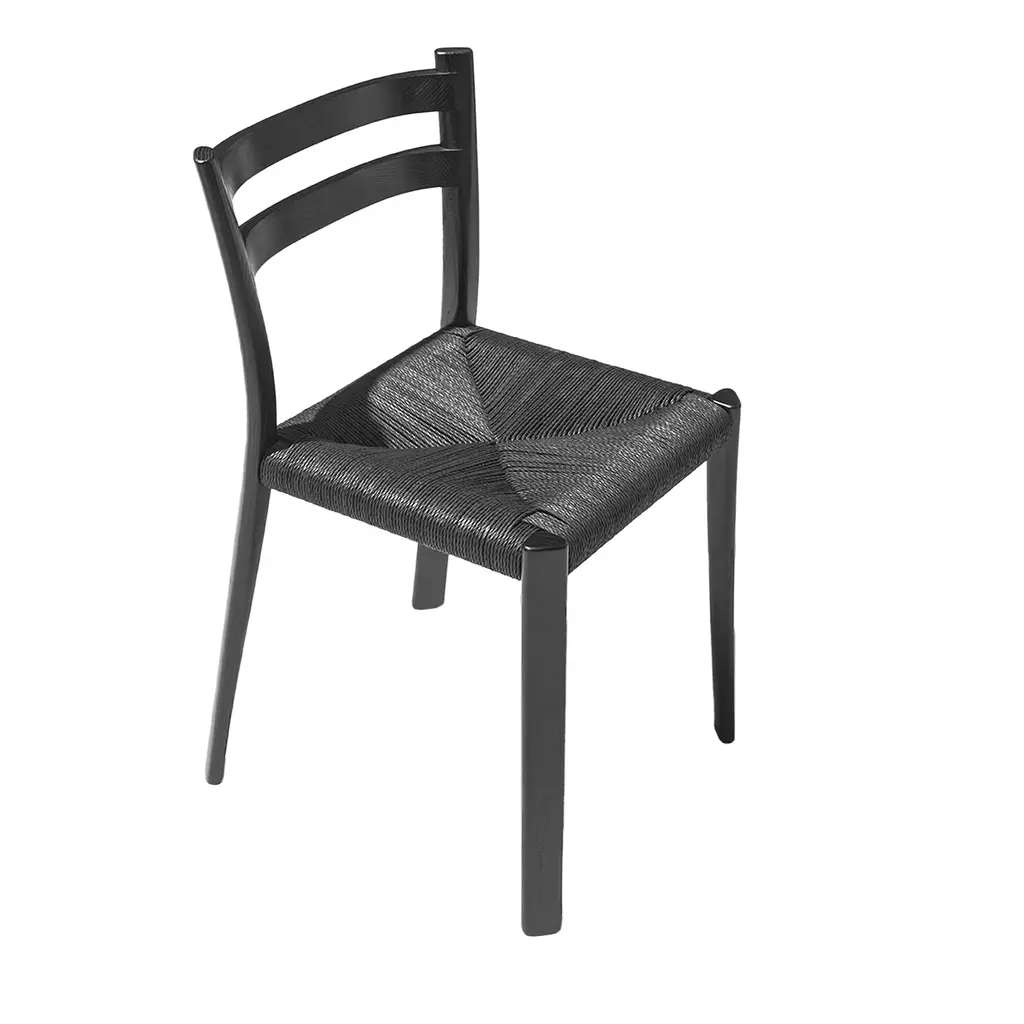 BURI chair in black ash wood with open pores. Seat made hand-woven paper rope, chair of inspiration of the old type "Friuli" Stamped by Maker