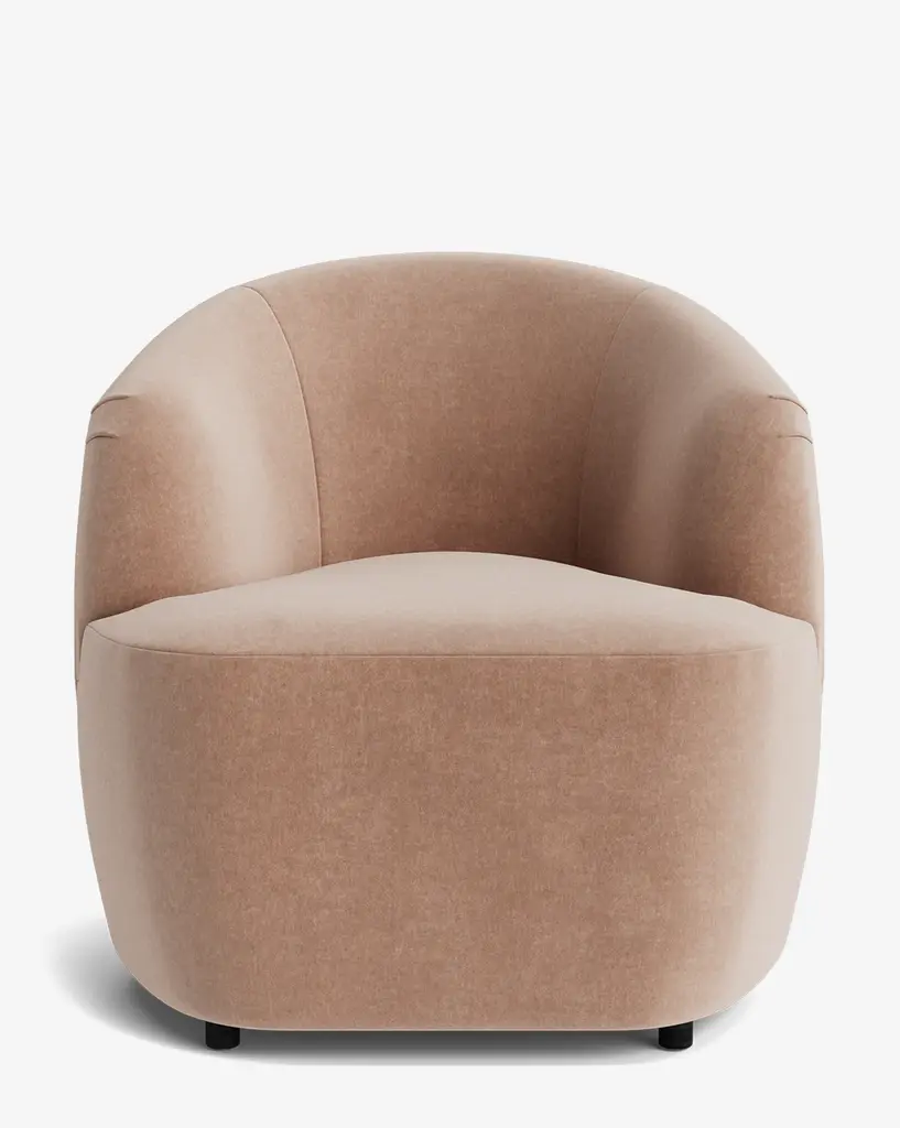 Made to order in a curated selection of fabrics, the Byron Chair features a curved back and sloped arm with a blind seam. Complete with deep, tight-pulled seats and recessed wood legs, the Byron Chair has a dressy but fun silhouette that is unique to our collection.