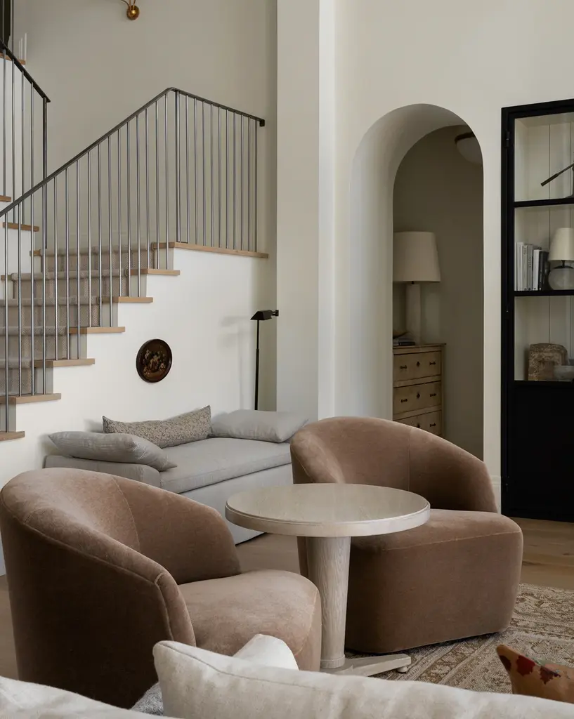 Made to order in a curated selection of fabrics, the Byron Chair features a curved back and sloped arm with a blind seam. Complete with deep, tight-pulled seats and recessed wood legs, the Byron Chair has a dressy but fun silhouette that is unique to our collection.