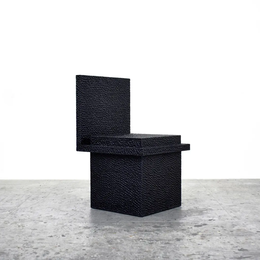 C1 chair by John Eric Byers.Dimensions: 49.5 x 45.8 x 77.5 cmMaterials: Carved blackened mapleAll works are individually handmade to order.John Eric Byers creates geometrically inspired pieces that are minimal, emotional, and modernly refined.John's individually handmade work is guided by purity in form, surface texture, structure, and respect for use of materials. Heralded as a leading American artist working in wood, permanent collections include the Smithsonian American Art Museum, the Philadelphia Museum of Art and the Museum of Arts and Design in NYC. Numerous awards include a Louis Comfort Tiffany Foundation Award, New York Foundation of the Arts Awards, and inclusion in the Smithsonian's Oral Archives of American Arts.
