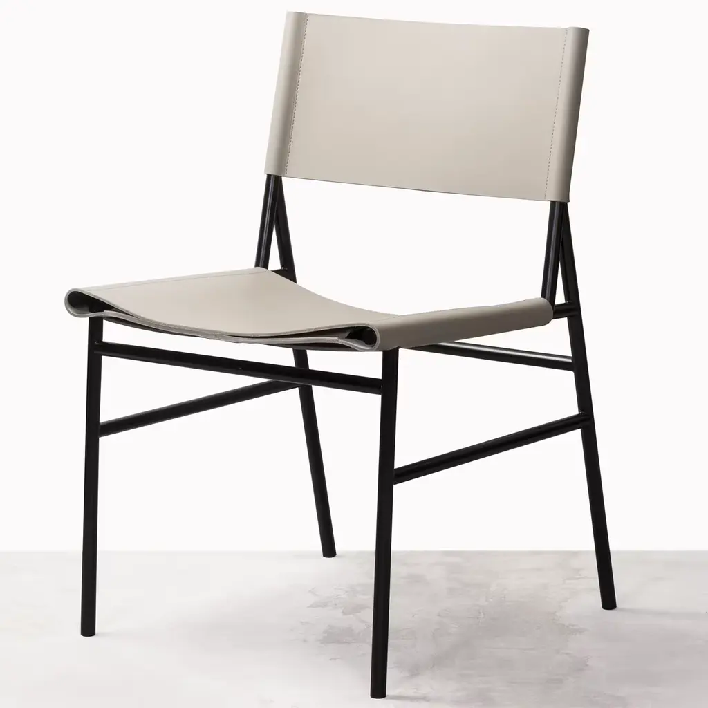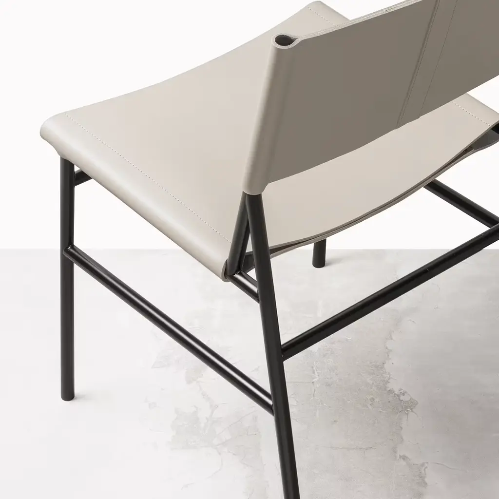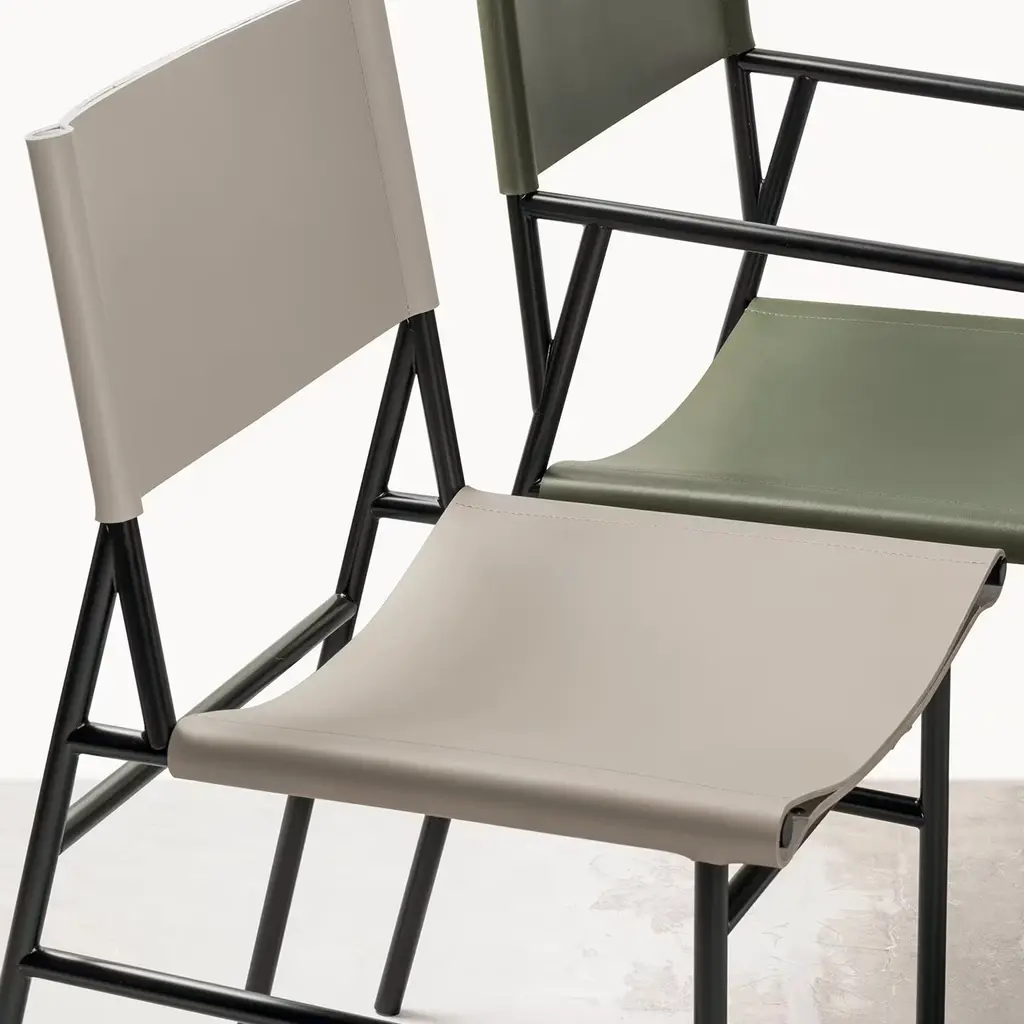 The metal frame of Caballè is designed to ensure the maximum comfort to everyone, also thanks to the two folded sheets of saddle leather attached to the seat and back of the chair. Its light and modern look will give that right touch of contemporaneity to any environment.