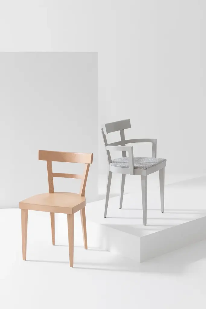 Café 460 is a chair with a solid beech wood frame.Cafè is a collection based on the classic tavern chair, reinterpreted in its proportions and lines.It tells the story of a region where not only the woodworking shops are the stars, but also the vineyards and cornfields.A timeless collection that preserves an old-world spirit.