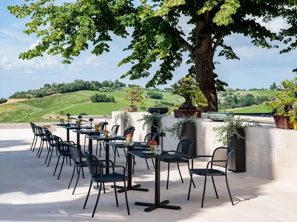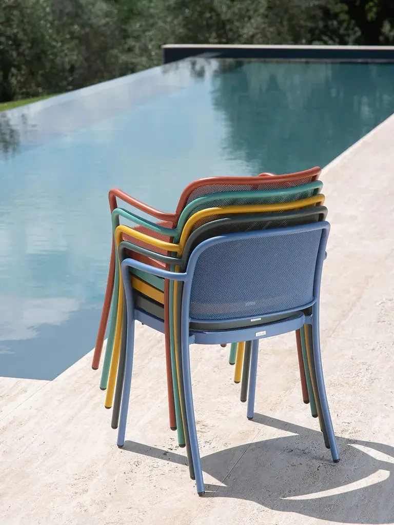 Café, designed by Christophe Pillet, is a line of chairs in steel with a contemporary feel and classic references. It has a solid, sturdy construction to guarantee long-term use. The collection demonstrates impressive versatility thanks to chairs, armchairs and stools. The broad colour palette makes it ideal for both outdoor and indoor spaces, at home or in professional settings.The clean, elegant lines mean it can easily be paired with a wide range of tables from different EMU collections.