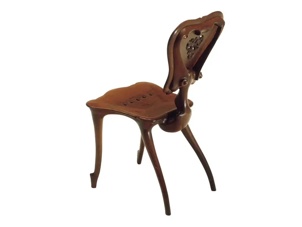 Calvet armchair, Antonio Gaudí1902Dimensions: 54 x 52 x 94 cmMaterials: Dark varnished oakSolid dark varnished oakAntoni Gaudí (1852/1926) is, without doubt, the most internationally well-known Spanish architect. But is not only his buildings and brilliant architectural solutions that have travelled the globe. His integrated conception of architecture led him to pay attention, not only to structural calculations, but also to all the decorative elements, including furniture, that would form part of the building. The admiration felt by modern designers for the furniture designed by Gaudí has not gone unnoticed by BD which was the first company to rescue them from history by embarking on their serial production using traditional art and craft techniques and the same materials -varnished solid oak- in order to reproduce all the rich detail displayed by the originals when they were first produced.BDB.