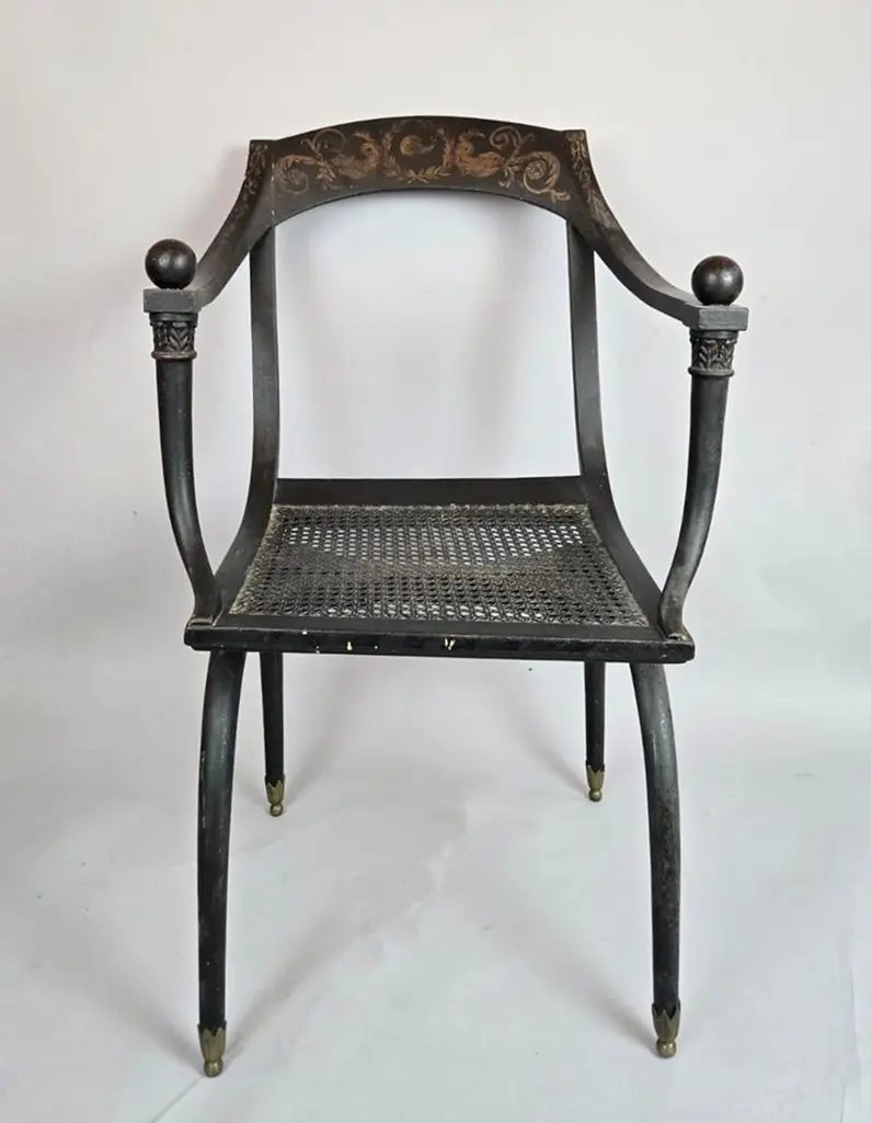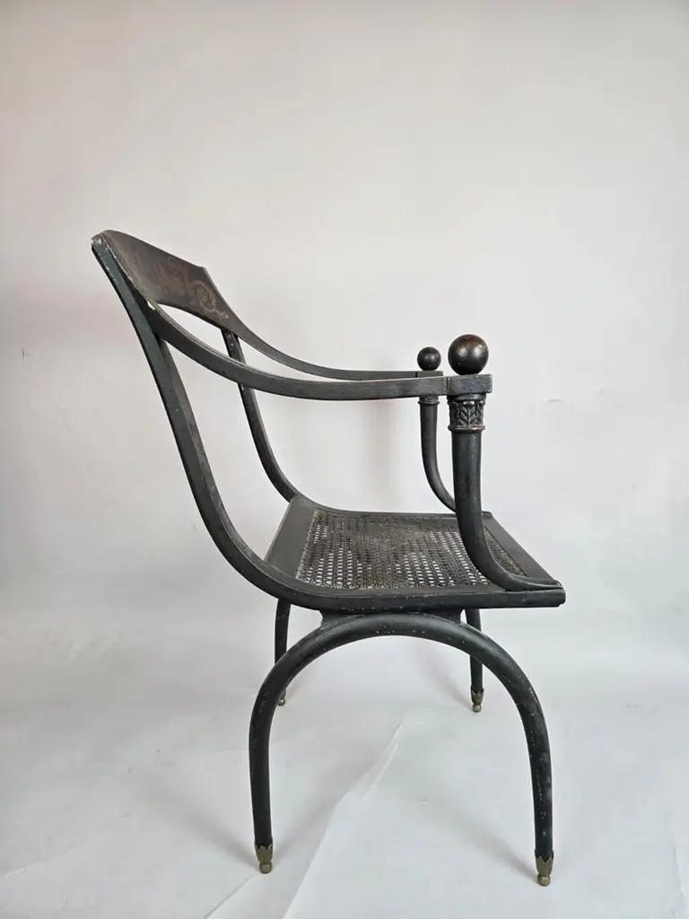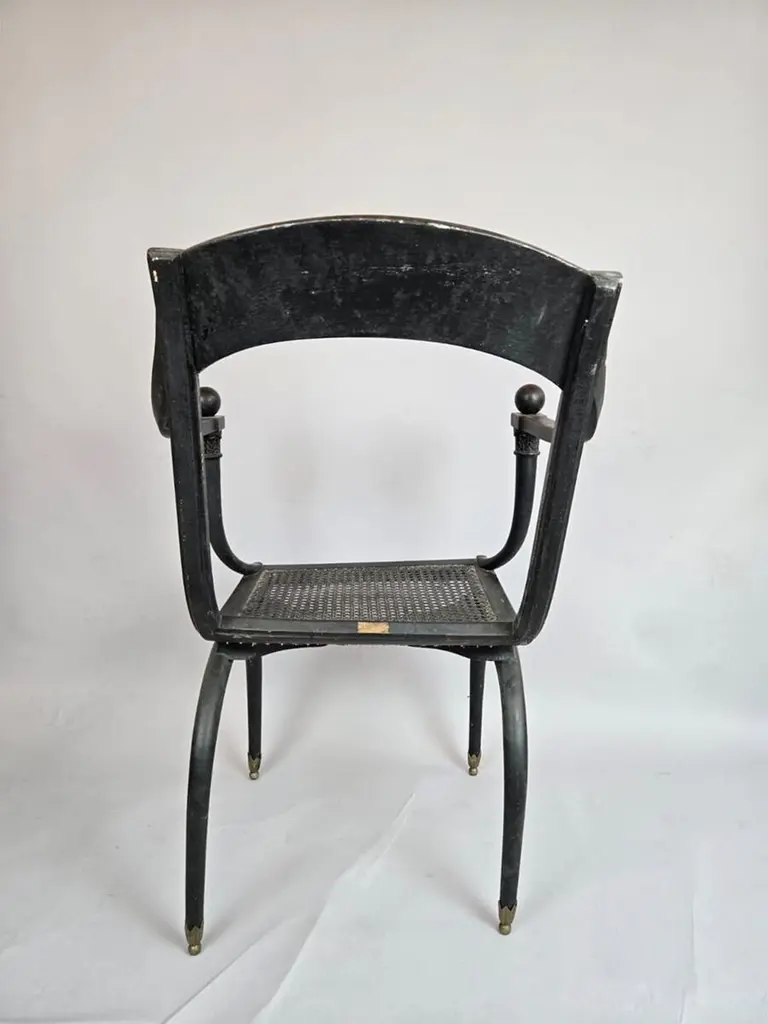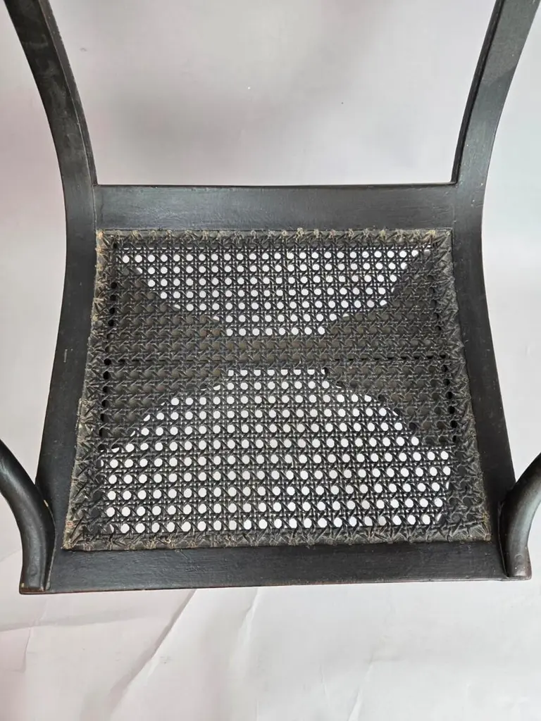 Caned chair by Jean-Joseph Chapuis , early 19th century - Sold Individually Jean-Joseph Chapuis was born in Brussels in 1765.He was trained in Paris, where he became a master craftsman, entitling him to use a personal mark (estampille) on his work. He had set up his workshop in his home town by 1795 and kept it active to 1830, regularly applying his mark on the pieces of furniture that he made. When the first reference guides on the history of French furniture in the 18th century appeared in Paris, this mark was attributed to Claude Chapuis, who was in fact only a simple trader, of whom little if anything is known.This deprived Jean-Joseph Chapuis of his fame and explains why pieces of furniture by Jean-Joseph Chapuis are rarely found in public collections outside France.The museum of Vleeshuis in Antwerp is an exception. Only single pieces made by Chapuis, not collections, have ever been found, so it is impossible to give a precise account of everything he produced during his lifetime.The museum of Saint-Josse-ten-Noode, Brussels, Belgium, is the only one to possess several marked pieces of Chapuis"s furniture. They were collected by Joseph Adolph Van Cutsem, a collector of Empire furniture, who in 1865 supplemented his collection with two significant purchases made during Chapuis"s funeral sale.However, these pieces do not reflect the full range of styles used by this cabinetmaker.