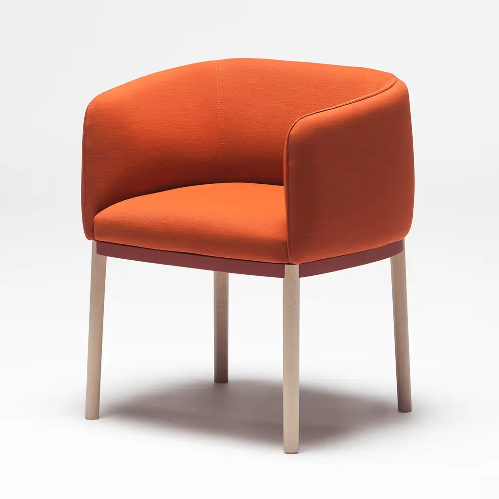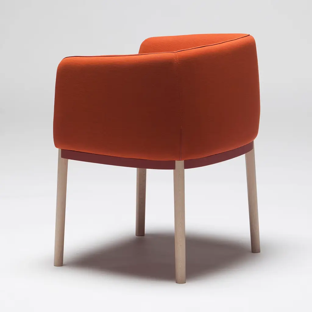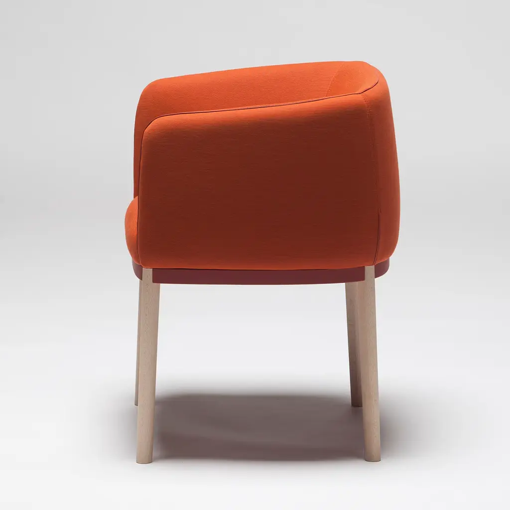 Cape 809 is a chair with a frame in beechwood, upholstered in fabric, and with differentiated density foam filling. As seen in the image, the fabric is Extra 03, Uniform Melange. Designed by: Debiasi Sandri. The armchair is also available in leather and a two-tone lacquer option only on request. Please contact the concierge for more information.