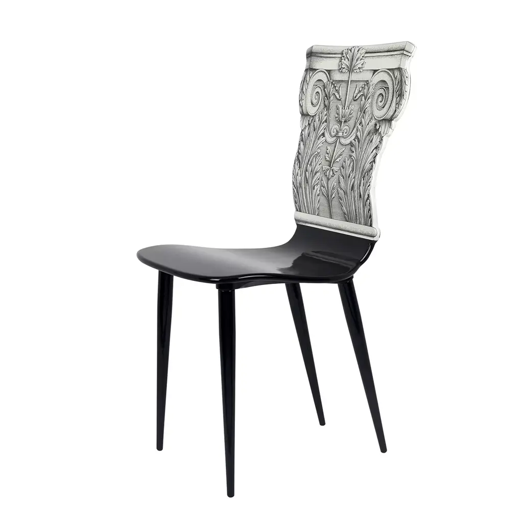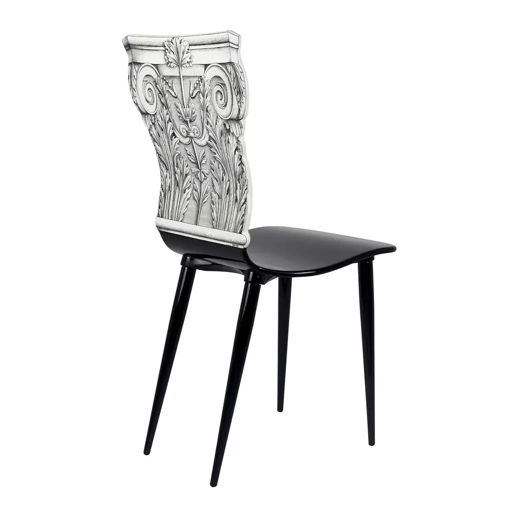 Hand-decorated and with solid wood legs, the chair is an archetypal piece of furniture and design that could not be missing from the Fornasetti repertoire. This trompe l'oeil decoration is inspired by classical art and lends any room an evocative, timeless playfulness. Any minor discrepancies between similar creations are the result of craftsmanship and attest to the uniqueness of each product.