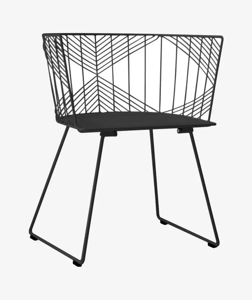 Inspired by the high seas, the metal-plated Captain Chair by LA-based Bend Goods adds a touch of glamour to your home. The curve of the seats and close spacing of the wires makes for an unexpectedly comfortable wire chair. For even more comfort, add a vegan leather seat pad, bikini, or cover up. *Please note: this item is for the Captain Chair without seat pads. Shop Cover-Up seat pad here.