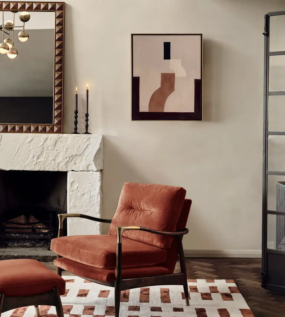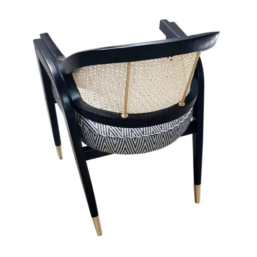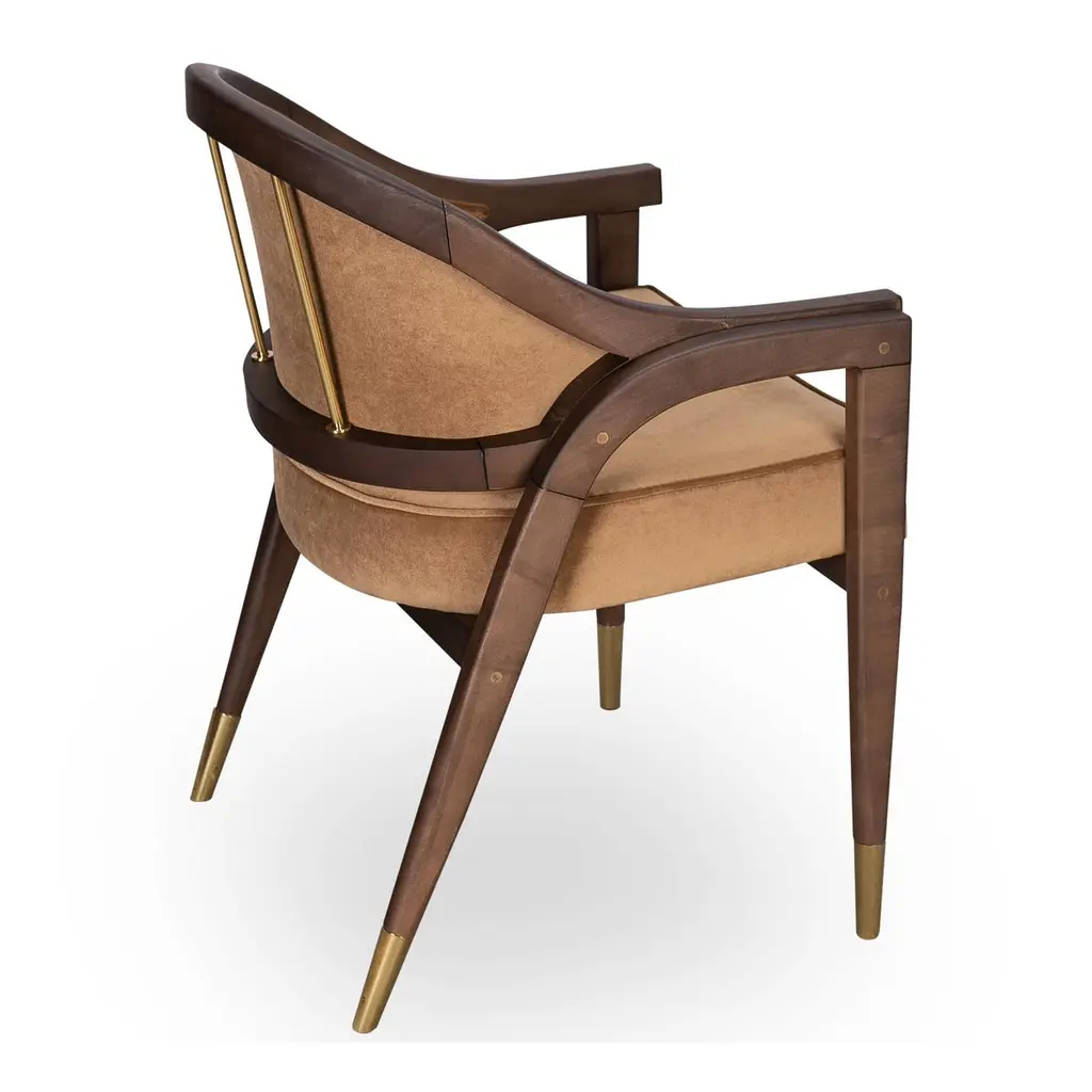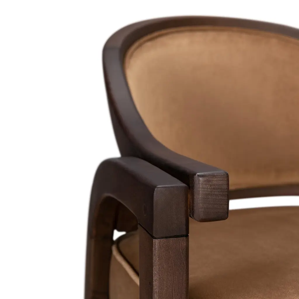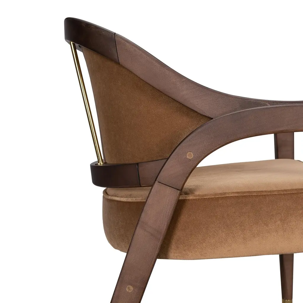 Armchair shown in ash wood stained walnut, cotton velvet fabric and brass details.Can be customized to your specifications. Price is COM.Can also be ordered with Caning. Other wood, stain, finish options are available.